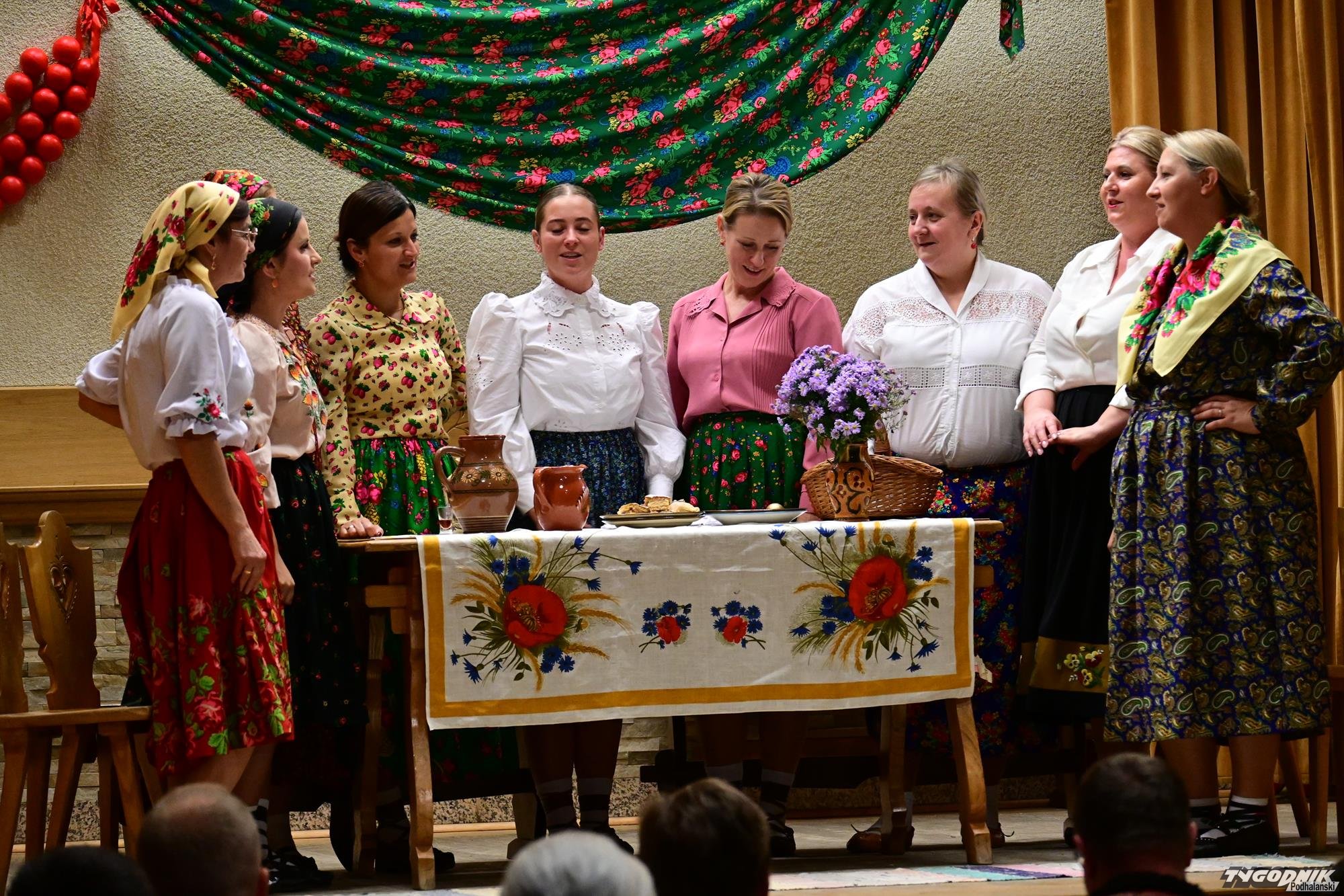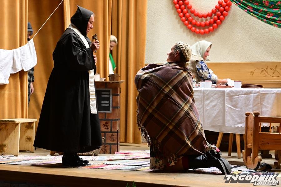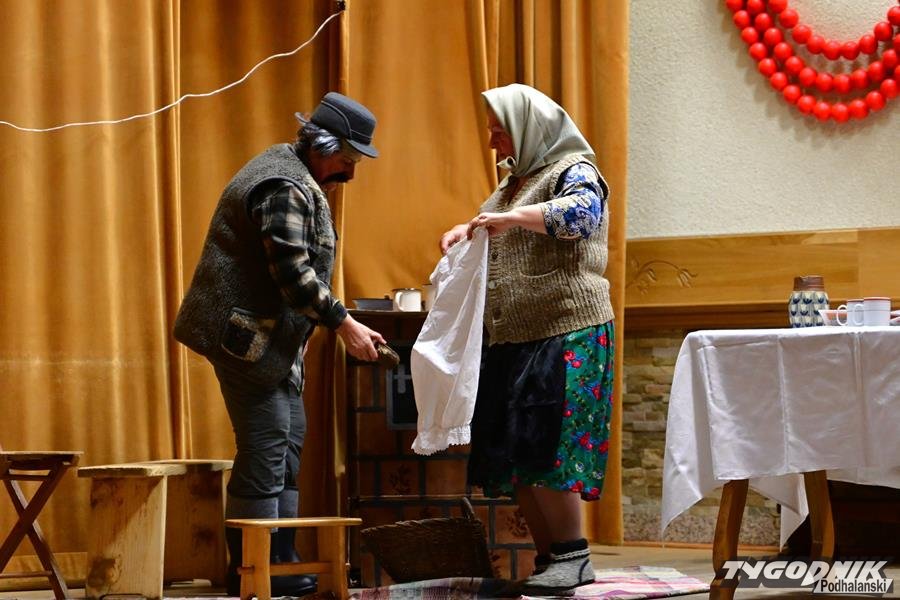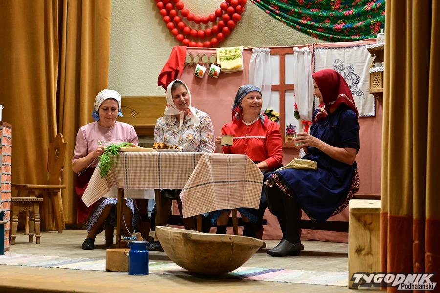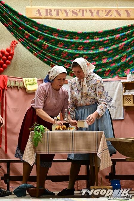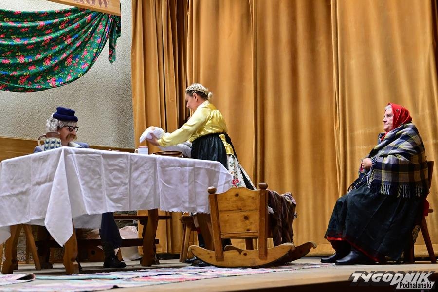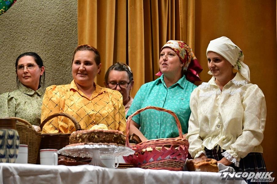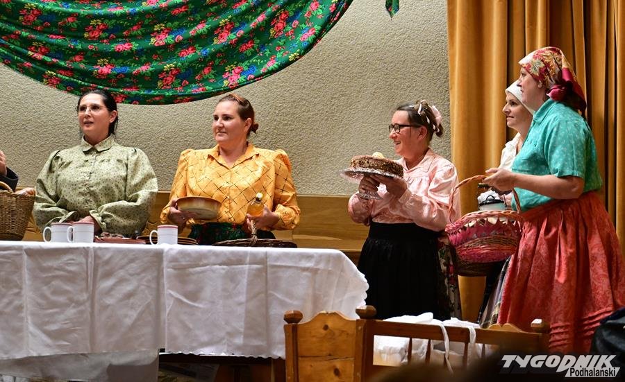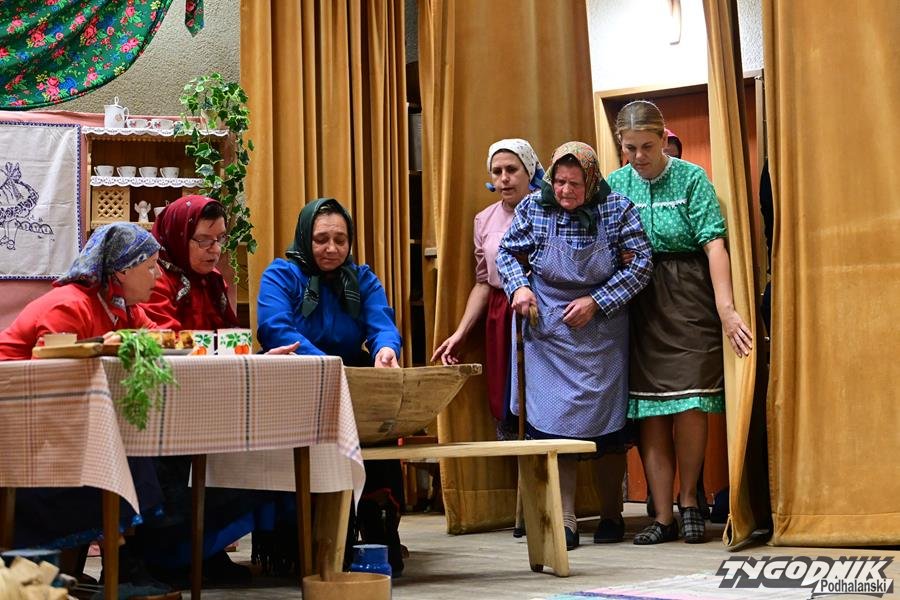Nie zabrakło humoru, wspomnień dawnych obrzędów i odważnych tematów. KGW z Dursztyna przypomniało zapomniany zwyczaj „wywodu” po porodzie, Nowa Biała wypędzała „śmierteckę” ze wsi, a Harklowa rozbawiła publiczność scenką o babskim… domu publicznym. Krempachy przywołały realia dawnych, wielopokoleniowych rodzin i tuczonych jesienią gęsi, a Morawczyna zabłysnęła zabawną scenką o furmanie u lekarza. Nie zabrakło też marzeń o morzu (Obidowa) i wścibskich sąsiadek (Ostrowsko).
