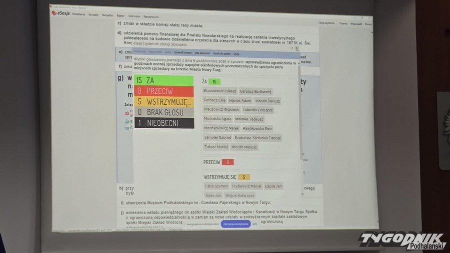 Rada Miasta Nowego Targu podjęła decyzję o wprowadzeniu nocnej prohibicji. Od 1 stycznia 2026 roku na terenie miasta obowiązywać będzie zakaz sprzedaży alkoholu w sklepach i na stacjach benzynowych w godzinach od 22:00 do 6:00.