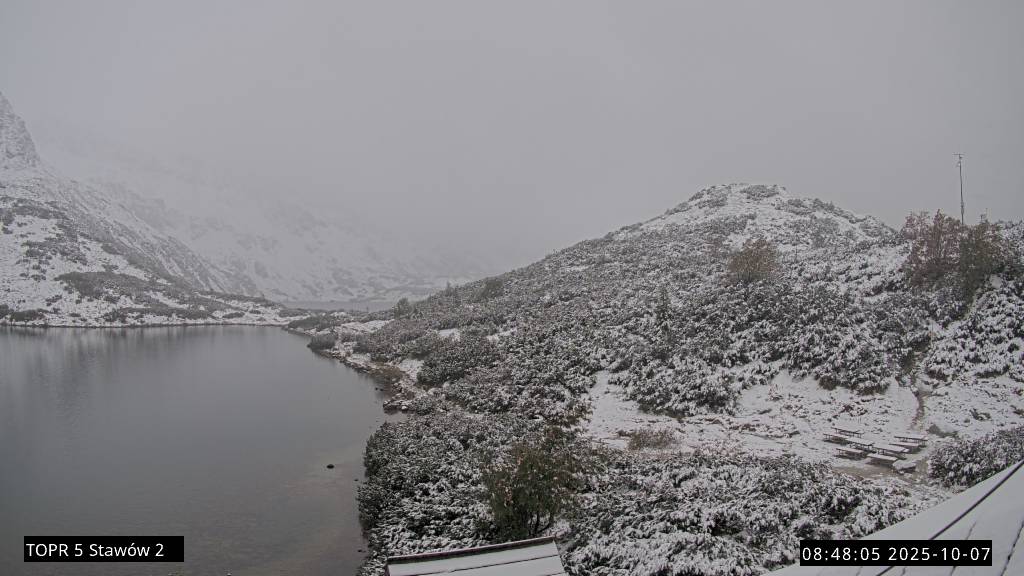 Na Kasprowym temperatura poniżej zera i pada śnieg. Opady śniegu i śniegu z deszczem występują teraz w Tatrach od wysokości ok 1600-1700 metrów. Niżej pada deszcz. Według prognoz opady będą zanikać dopiero w nocy. Środa ma być jedynym w tym tygodniu dniem bez deszczu. Jest szansa na przejaśnienia i słońce, szczególnie w godzinach popołudniowych. Niestety, w czwartek znowu zapowiadane są opady. Na razie poprawy pogody i złotej tatrzańskiej jesieni w prognozach nie widać.