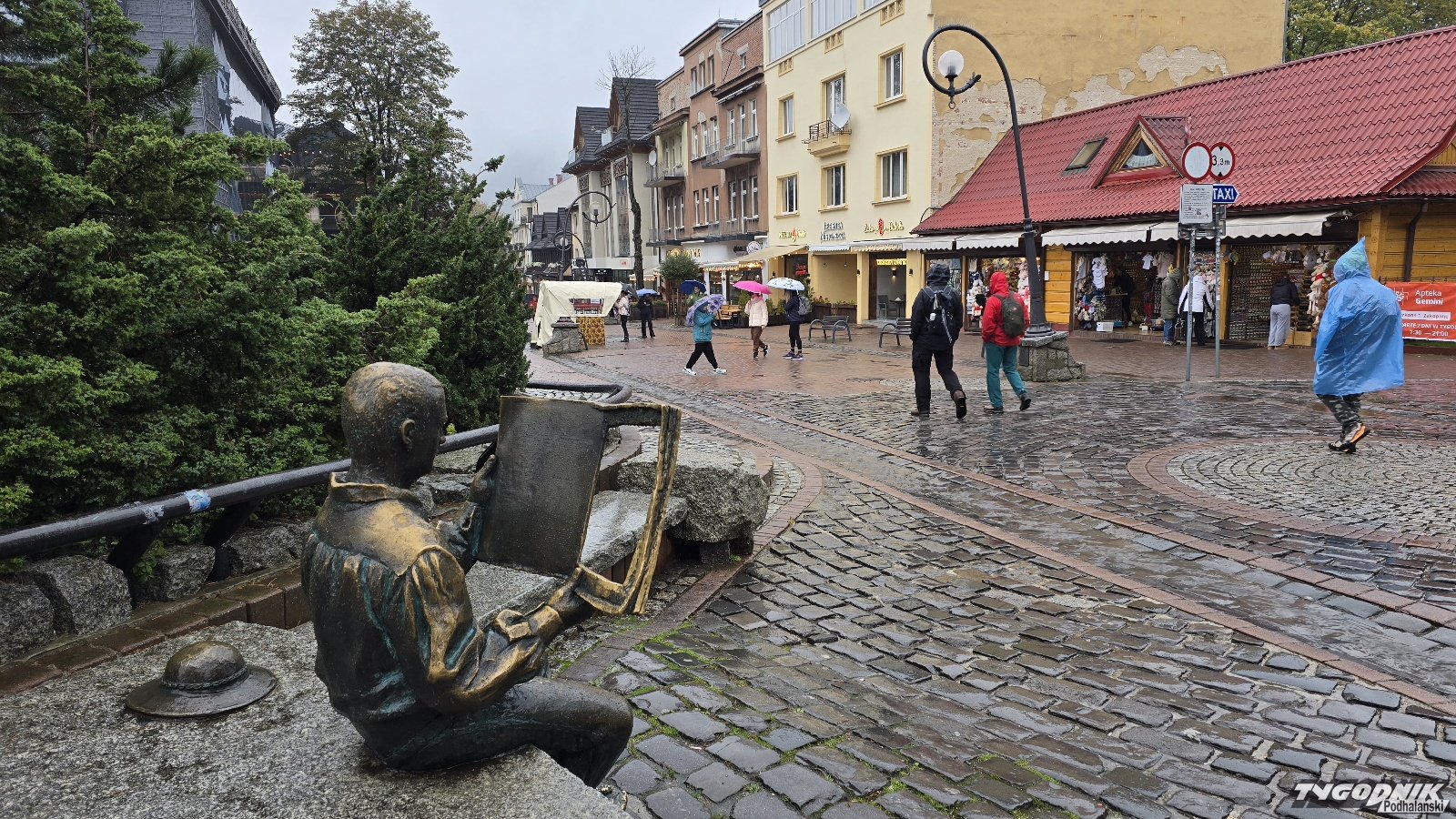 Dziś na Krupówkach królują parasole i płaszcze przeciwdeszczowe.