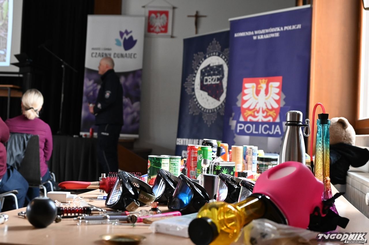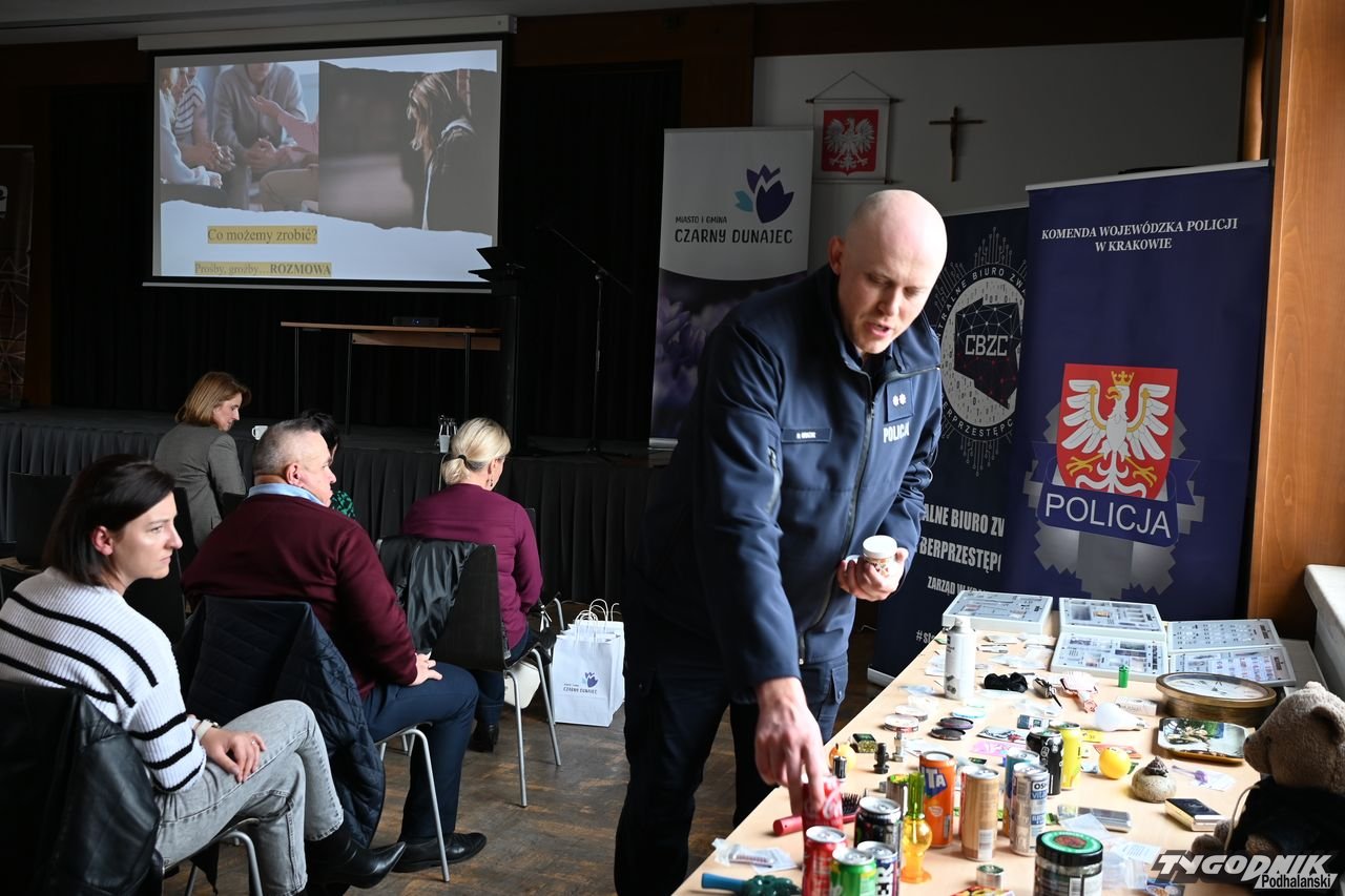 Jednym z prelegentów był podkomisarz Hubert Bracik z Wydziału Prewencji Komendy Wojewódzkiej Policji w Krakowie. - Cieszę się, że spotykamy się w takim szerokim gronie. Niejednokrotnie nauczyciele, pedagodzy, dyrektorzy są również rodzicami, więc warto, żeby mieli świadomość zagrożeń płynących z zażywania substancji psychoaktywnych A jest ich bardzo wiele, począwszy od tytoniu, przez alkohol i narkotyki - zaznaczył H. Bracik.