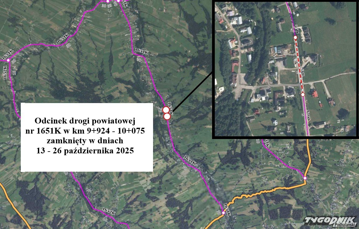 Na blisko dwa tygodnie zamknięty zostanie odcinek drogi w Ratułowie, do Cichego i Zębu dojedziemy przez Czerwienne.