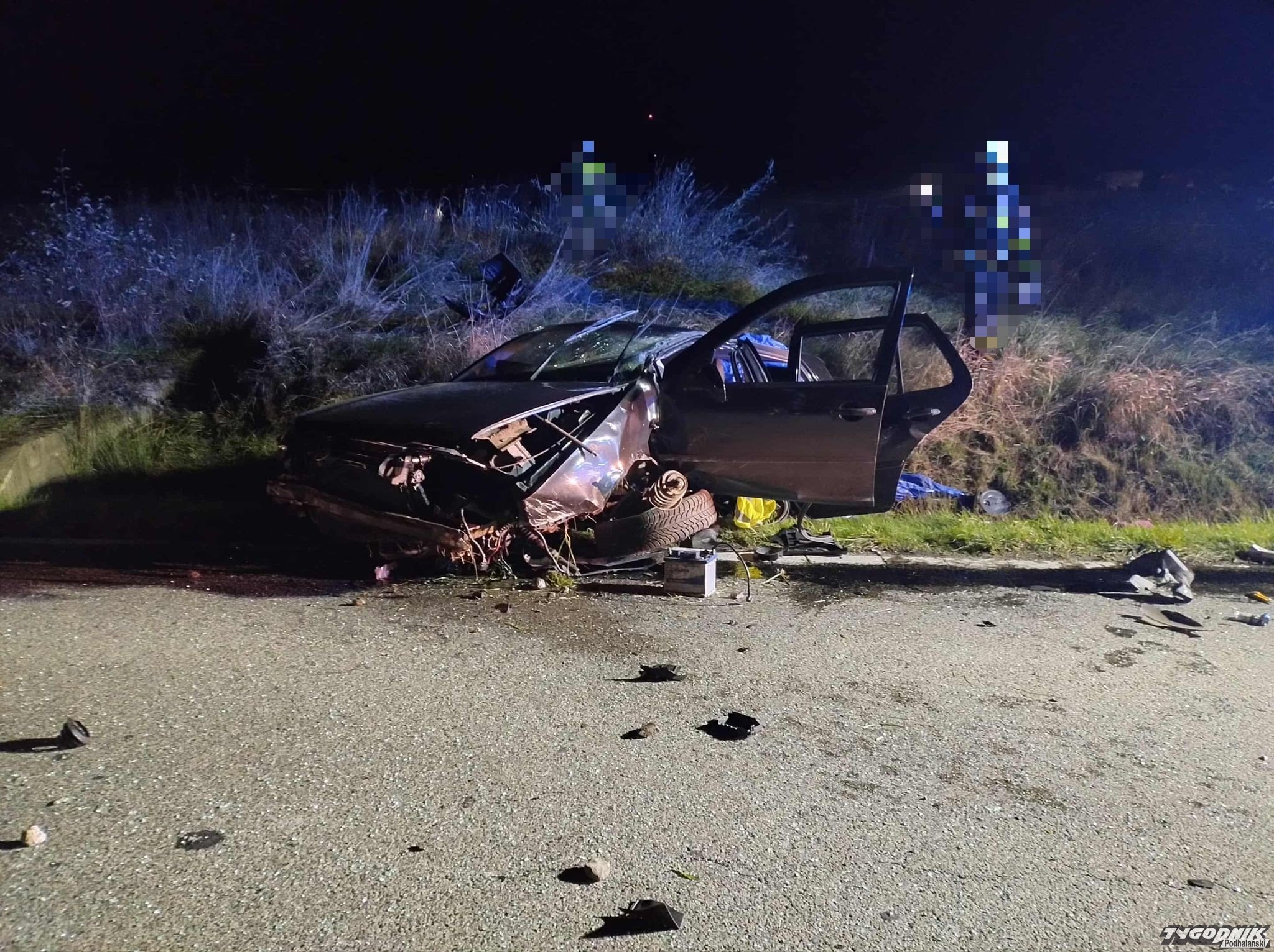 Auto kompletnie zniszczone. Nie ma poszkodowanych