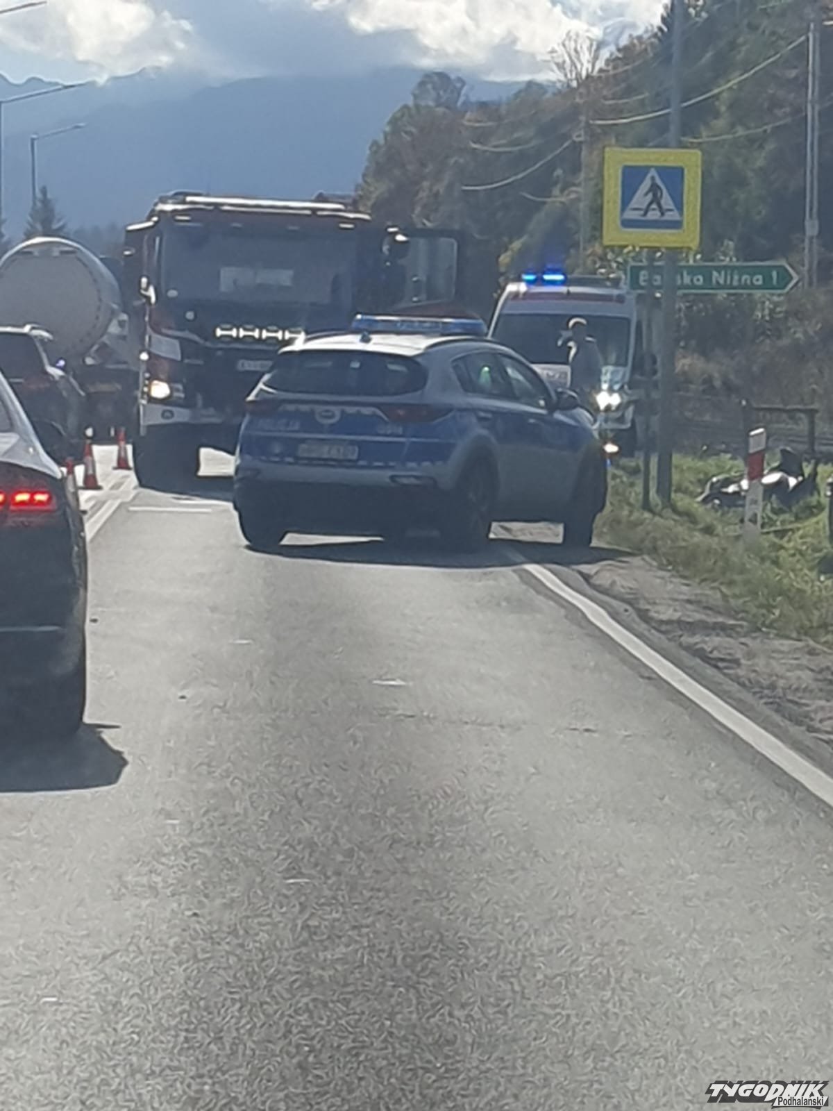 Na zakopiance w Białym Dunajcu doszło do groźnie wyglądającego zderzenia samochodu osobowego z motocyklem. Ze wstępnych ustaleń wynika, że poszkodowane zostały dwie osoby. Na miejscu są strażacy, zespół ratownictwa medycznego i policja, która wyjaśnia przebieg wypadku.