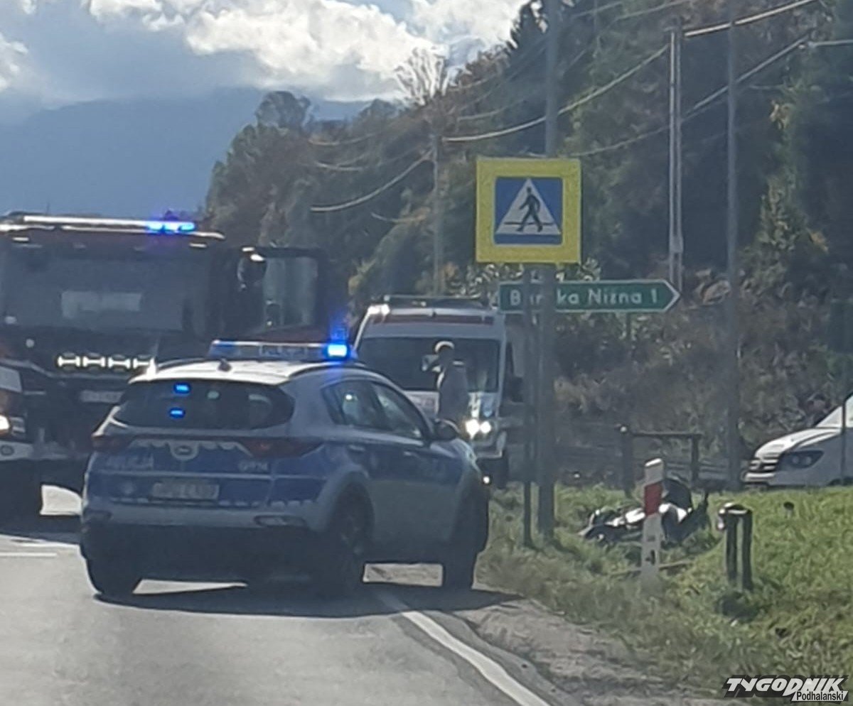 W Białym Dunajcu doszło do groźnie wyglądającego zderzenia z udziałem motocyklisty.