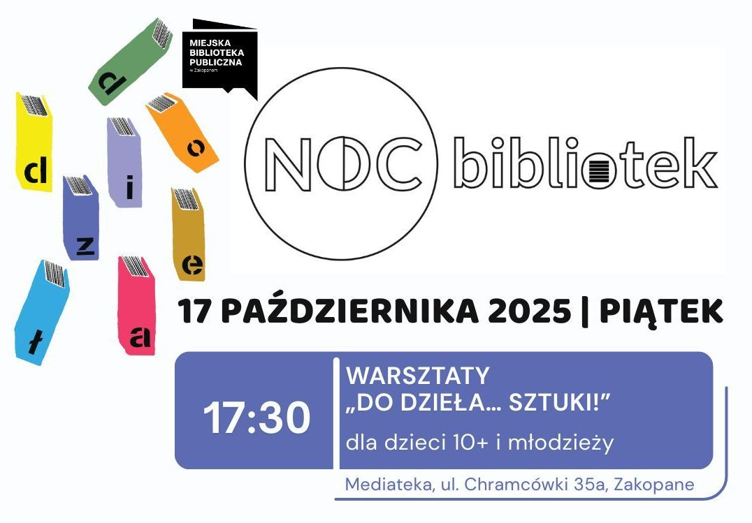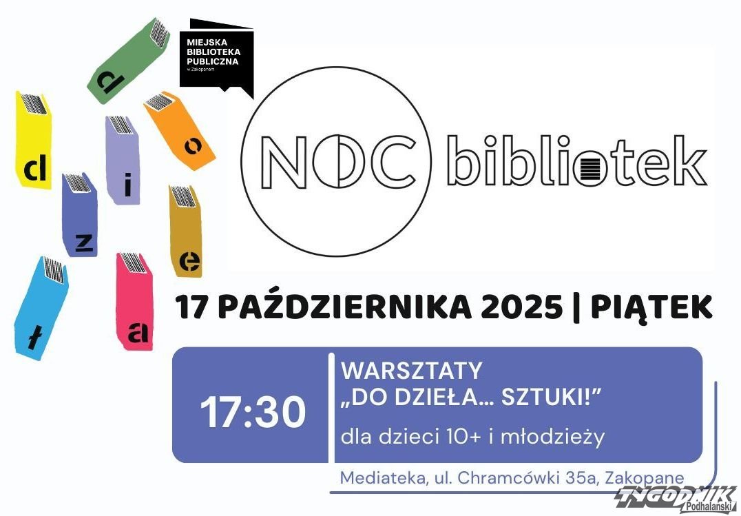Miasto Zakopane oraz Miejska Biblioteka Publiczna im. Stefana Żeromskiego zapraszają na XI edycję Nocy Bibliotek, która w tym roku odbędzie się w piątek 17.10 pod hasłem "Do dzieła!".