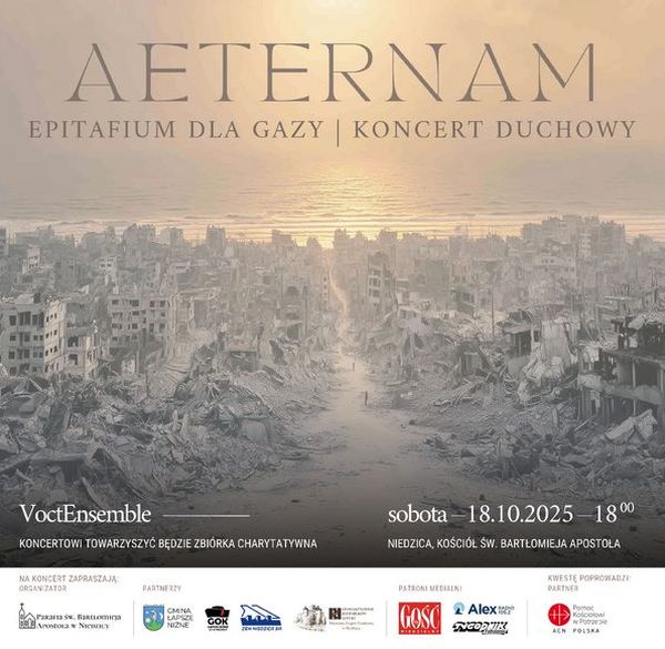 Koncert "Aeternam. Epitafium dla Gazy" odbędzie się w kościele św. Bartłomieja Apostoła w Niedzicy w sobotę 18.10. Początek o godzinie 18. Towarzyszyć mu będzie zbiórka charytatywna.