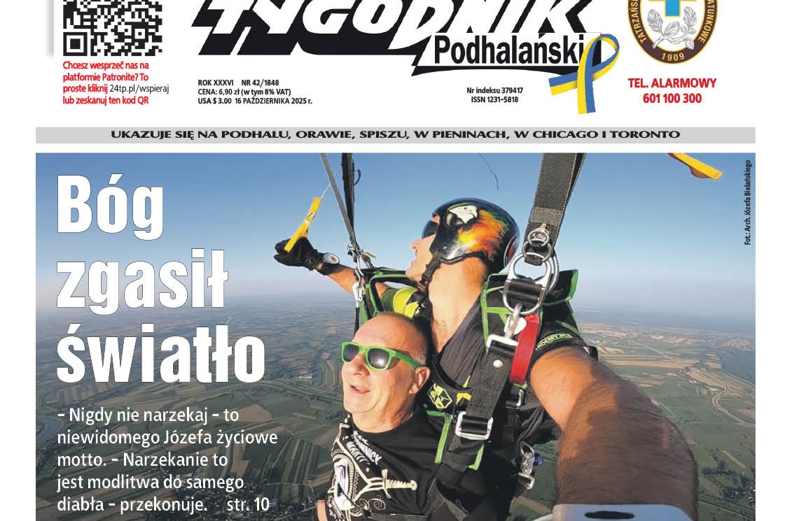 W papierowym wydaniu Tygodnika piszemy o niewidomym panu Józefie ze Spytkowic. - Nigdy nie narzekaj - to Józefa życiowe motto. - Narzekanie to jest modlitwa do samego diabła - przekonuje i skacze ze spadochronem!