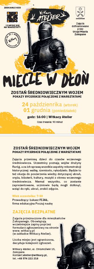 Zajęcia przeznaczone są dla mieszkańców Zakopanego. Obowiązują wcześniejsze zapisy poprzez formularz zgłoszeniowy na stronie www. witkacy.pl (w zakładce Witkacy Atelier).