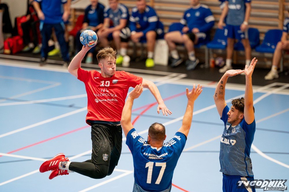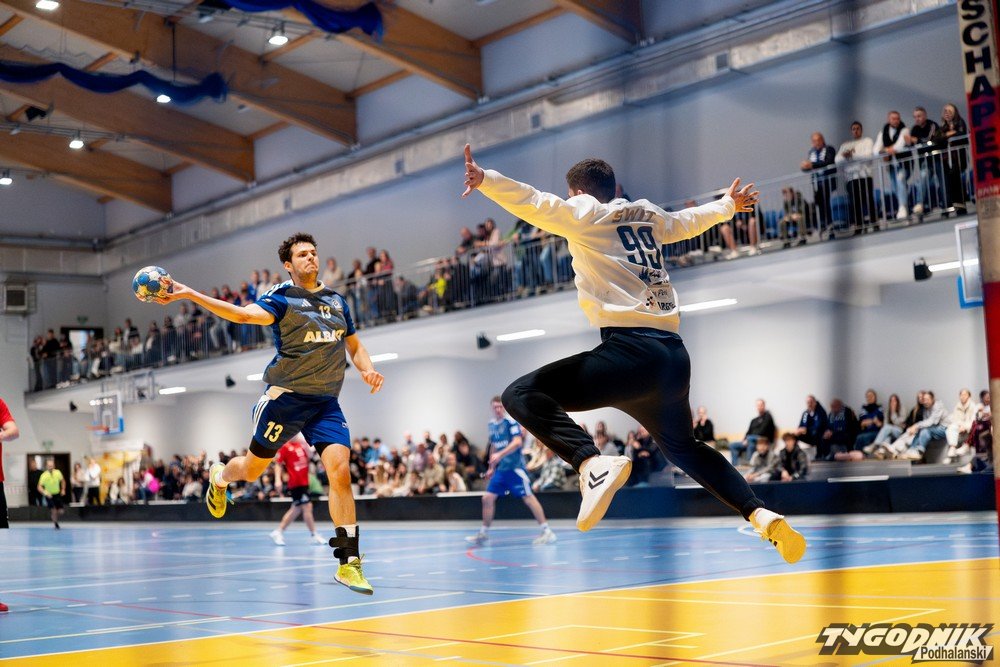 Druga połowa przyniosła jednak sporo emocji. Świt momentami tracił rytm gry, a kary osłabiały zespół w kluczowych fragmentach. W trudnych momentach z pomocą przyszedł jednak bramkarz Krzysztof Kość, który popisał się serią fenomenalnych interwencji – zdecydowanie godnych poziomu wyższej ligi. Jego pewność w bramce i charyzma dodały drużynie wiary, co szybko przełożyło się na lepszą grę całego zespołu.