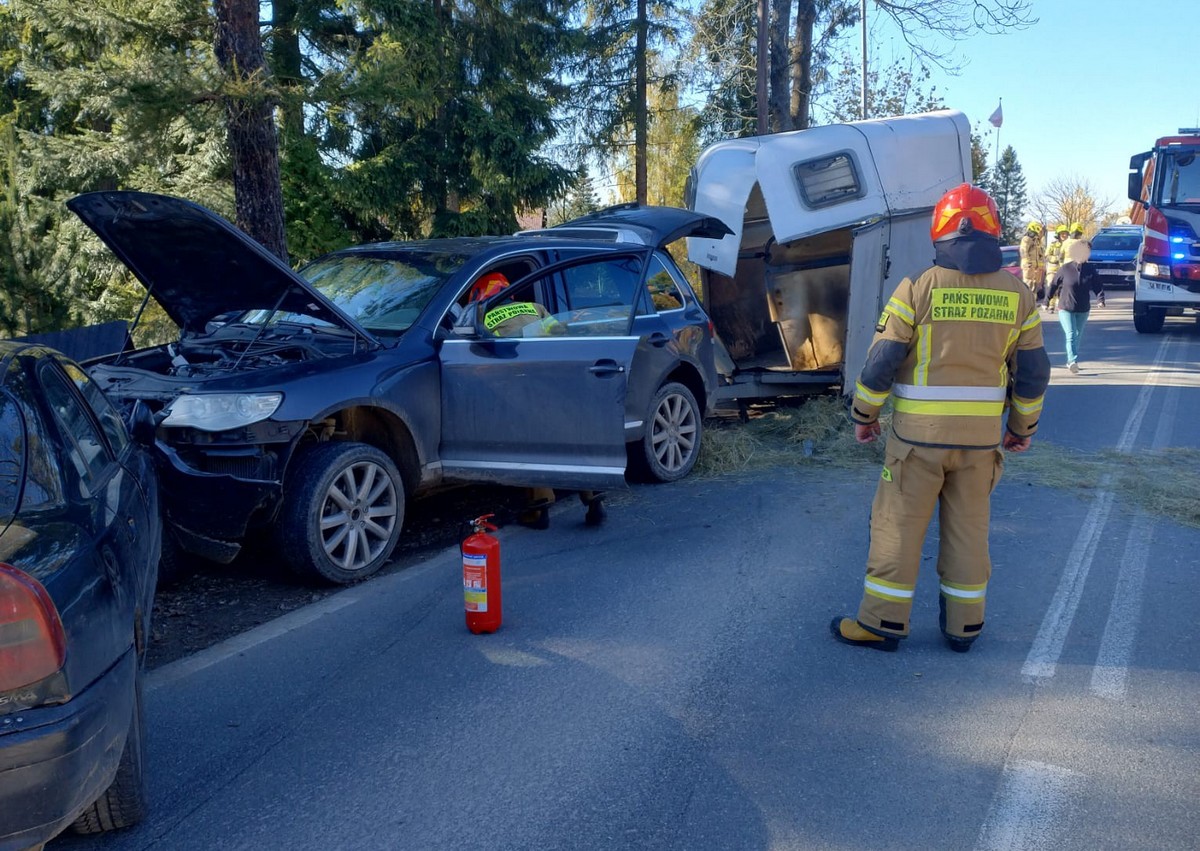 Zderzenie dwóch pojazdów w Bukowinie. Jeden z nich przewoził konie