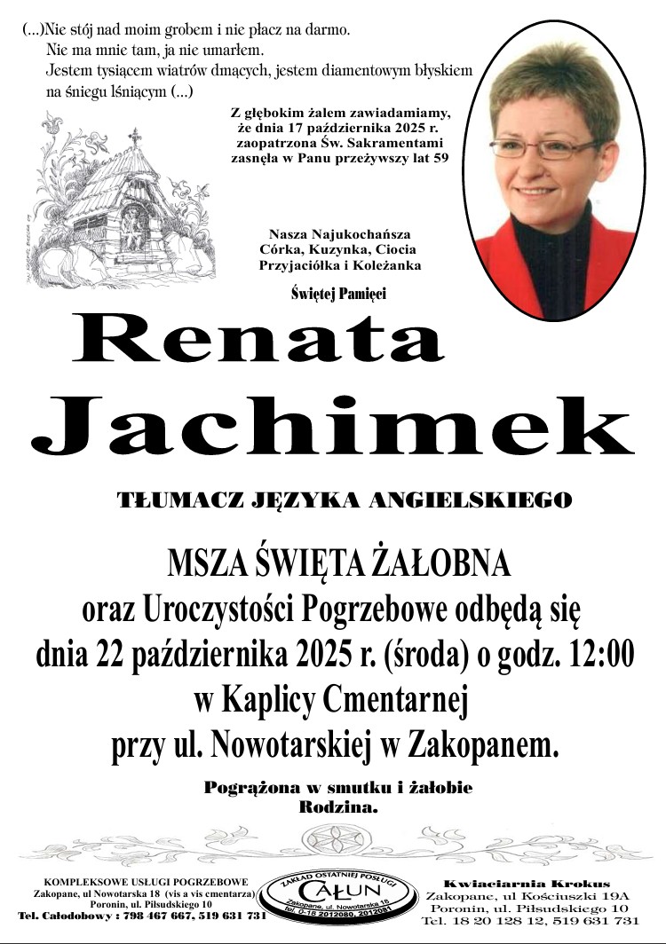 2025-10-20 18:30 Ależ to Zakopane piękne w jesiennych barwach (WIDEO) 2025-10-20 18:00 Anatomia brzmienia - warsztaty wokalne w SKZ 2025-10-20 17:30 Puchar Polski modeli sterowanych automatycznie F1E 2025-10-20 17:16 Utrudnienia na popularnym szlaku w Tatrach 2025-10-20 17:00 Koncert dedykowany Strefie Gazy (ZDJĘCIA, WIDEO) 2025-10-20 16:30 Randka w Bistro Bursztyn 2025-10-20 16:00 Srebrny medal wywalczony z rywalami silniejszymi fizycznie, brawo Jan Stoch 2025-10-20 15:00 Jazda na czołgistę jest niebezpieczna i może skończyć się mandatem 2025-10-20 14:49 Twoja druga skóra w chłodne dni. Jak rajstopy z merynosa dbają o komfort wrażliwej skóry? 2025-10-20 13:59 Zderzenie dwóch pojazdów w Bukowinie. Jeden z nich przewoził konie 3 2025-10-20 13:47 Gorąca sesja w Kościelisku. Odwołany przewodniczący Rady Gminy 5 2025-10-20 12:58 Mandat w wysokości 1500 zł i 12 punktów karnych dla sprawcy kolizji 2 2025-10-20 12:31 Dlaczego projektor LED to dobry wybór do domu i biura? 2025-10-20 12:30 Super Session w nowotarskim MCK 2025-10-20 12:18 Pożar domu w Szlachtowej 1 2025-10-20 11:59 Najpiękniejszy jesienny dzień w tym roku? Cudowny poranek na Nosalu (WIDEO) 1 2025-10-20 11:32 Gdzie w Krakowie najlepiej rozwijać karierę zawodową i które sektory rosną najszybciej? 2025-10-20 11:00 Rusza budowa ronda na starej Zakopiance 2025-10-20 10:39 Dlaczego warto zatrzymać się w Europeum Hotel podczas weekendu we Wrocławiu? 2025-10-20 09:59 Piękna pogoda i pustki w Kuźnicach 1 2025-10-20 08:59 Żywiołowy koncert zespołu FiśBanda (WIDEO) 2025-10-20 08:00 Strażacy u najmłodszych mieszkańców gminy Ochotnica Dolna 2025-10-19 21:00 Druhowie z Tylmanowej wzbogacili się o łódź ratowniczą 2025-10-19 20:00 Jubileusz przewodników tatrzańskich w Zakopanem (ZDJĘCIA) 2025-10-19 19:00 Bóg zgasił światło. - Nigdy nie narzekaj - to Józefa życiowe motto 2025-10-19 18:00 Pendolino pod Giewontem. Co zmieni się dla zwykłego podróżnika? 6 2025-10-19 17:00 Ratułów. 30-lecie Związku Podhalan (ZDJĘCIA, WIDEO) 2025-10-19 16:00 Dwa hotele w Zakopanem nagrodzone Kluczami Michelin 7 2025-10-19 14:59 Dziś kameralny, a kiedyś najdłuższy redyk w Polsce (WIDEO) 2025-10-19 14:00 500 dni burmistrza. Jak rządy Łukasza Filipowicza oceniają radni i mieszkańcy? 16 2025-10-19 12:59 Redyk bacy Klusia (WIDEO) 1 2025-10-19 12:00 Jesienny Redyk w Czarnym Dunajcu 2 2025-10-19 11:00 Co z nich wyrosło? 2025-10-19 10:00 Rozpoczęła się XXVI edycja konkursu "Tatrzańska Jesień 2025" 2025-10-19 09:00 Natalia Tomasiak i Emil Drabik najszybsi w biegu pod Krokwią w Zakopanem 1 2025-10-19 08:00 Niedźwiedź buszuje w Gorcach 2025-10-18 21:55 Nie żyje prof. Marian Tischner 2025-10-18 21:01 Redyk braci Leśnickich przeszedł przez Kluszkowce 2025-10-18 20:24 Akcja straży pożarnej na Jeziorze Czorsztyńskim 2025-10-18 19:50 Jan Gąsienica Walczak wicedyrektorem Centralnego Ośrodka Sportu w Zakopanem 22 2025-10-18 19:03 Leśni tropiciele w akcji 2025-10-18 18:00 Święto edukacji, współpracy i pasji (ZDJĘCIA) 2025-10-18 17:00 Będzie bezpieczniej w Spytkowicach 4 2025-10-18 16:00 Sadzonki jawora za zużyte baterie 2025-10-18 15:33 Kolejne utrudnienia na drodze w Jaworkach 2025-10-18 15:00 Mistrzowie poprowadzili trening na stadionie przy ul. Orkana (ZDJĘCIA) 2 2025-10-18 14:00 Tylmanowa będzie nie do poznania (WIDEO) 4 2025-10-18 12:39 Pendolino po raz pierwszy w Zakopanem! Uroczyste powitanie z kapelą, ministrem i oscypkami (ZDJĘCIA, WIDEO) 12 2025-10-18 12:00 Tak prezentuje się wyremontowany odcinek drogi Oswalda Balzera 5 2025-10-18 11:00 W Kuźnicach pierwsze opady śniegu (WIDEO) 1