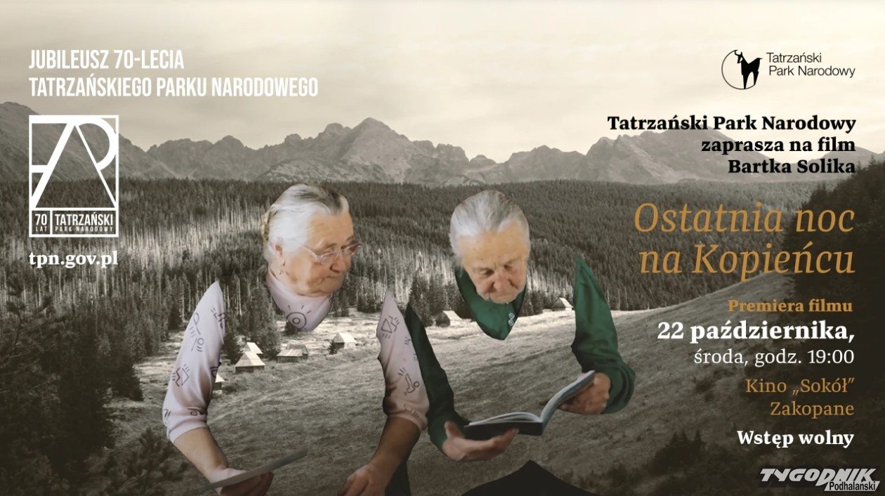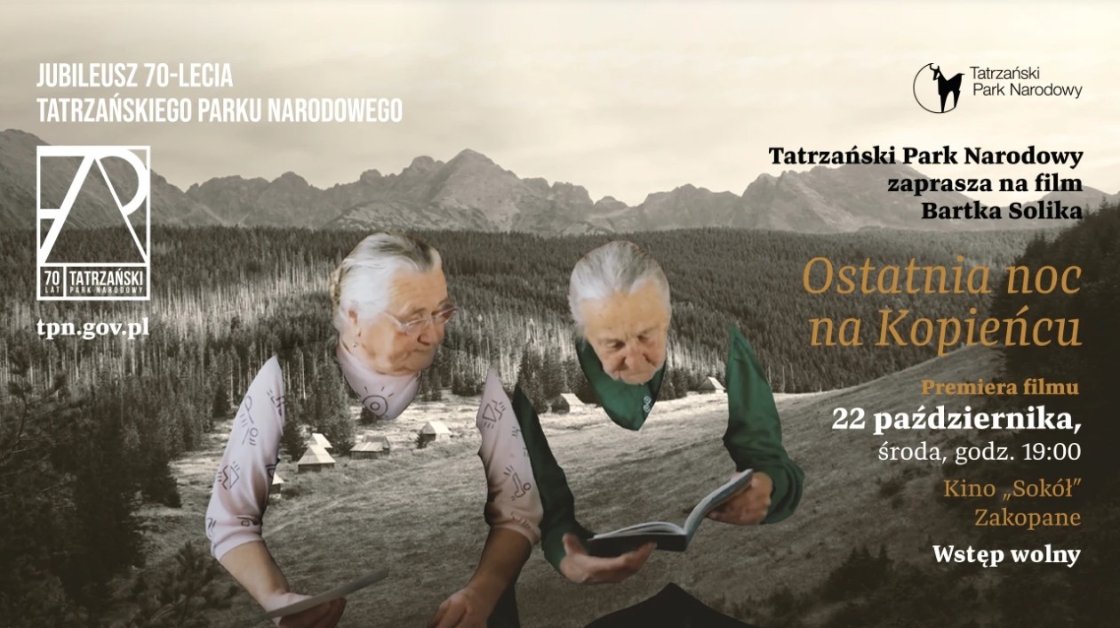 Tatrzański Park Narodowy zaprasza na premierę filmu Ostatnia noc na Kopieńcu autorstwa Bartka Solika - poruszającej opowieści o ludziach, których życie na zawsze zmieniły wywłaszczenia z Tatr.