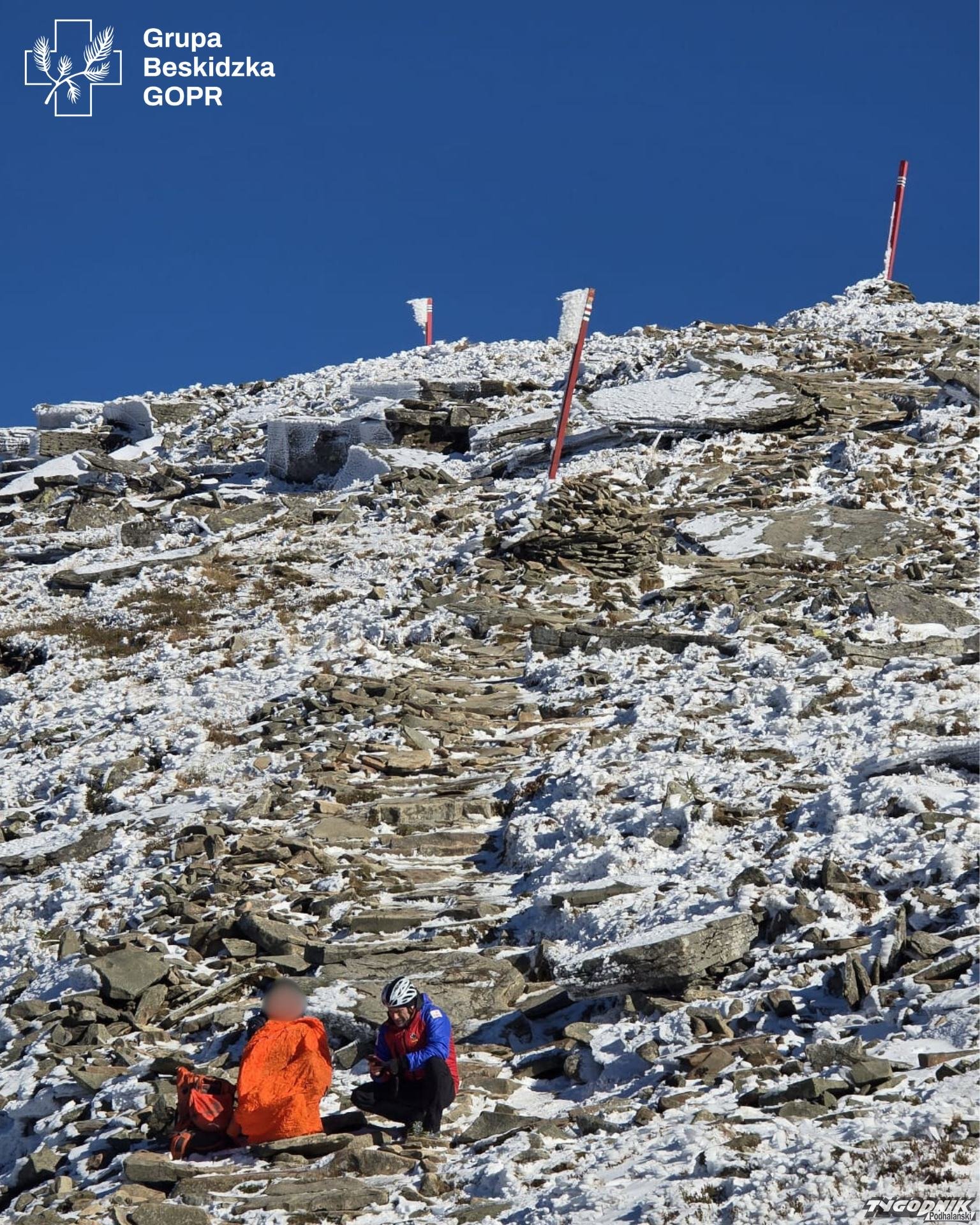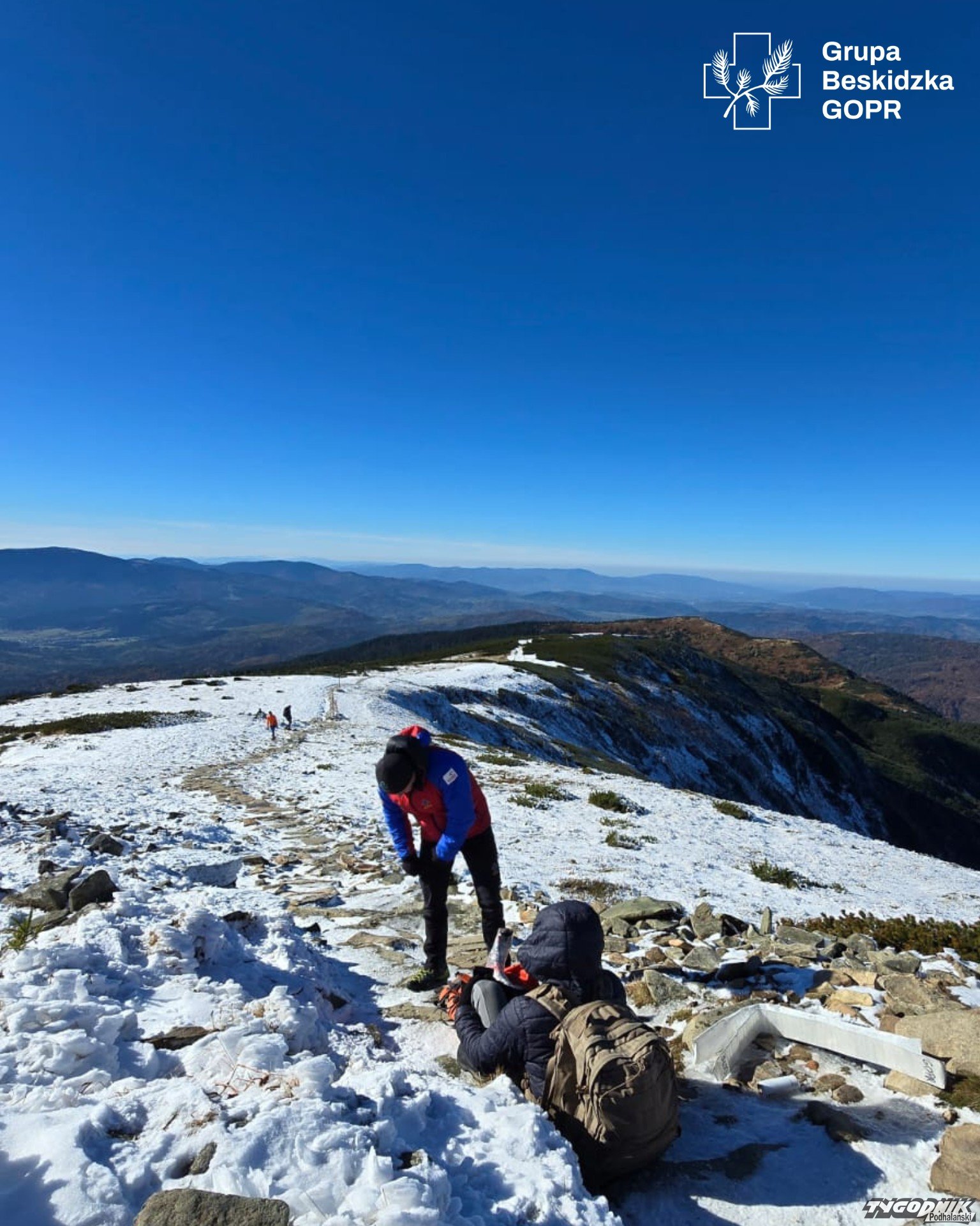 Na królowej Beskidów turysta doznał poważnego urazu nogi.