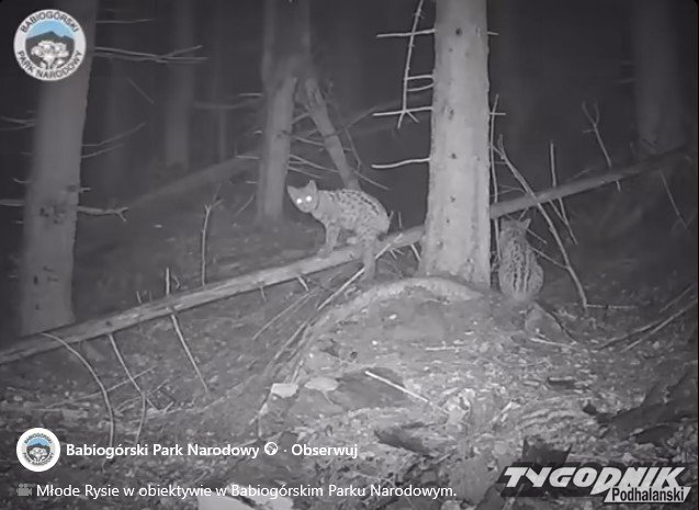 Fotopułapka Babiogórskiego Parku Narodowego uchwyciła małe rysie.