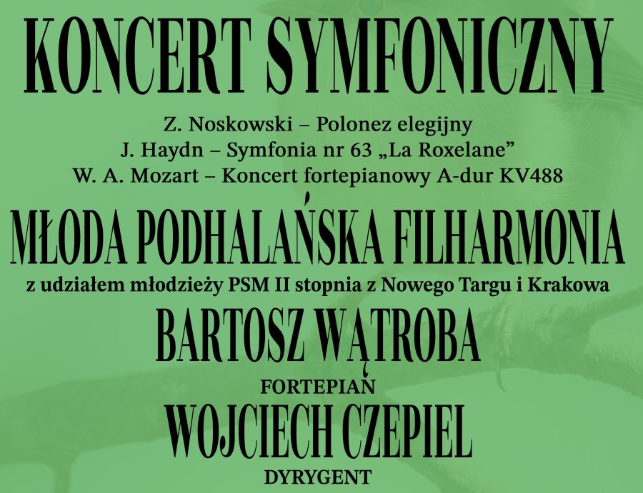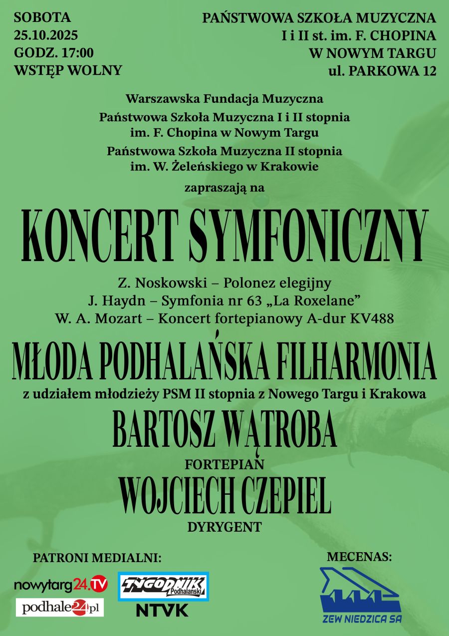 Koncert odbędzie się w sobotę 25.10 w auli Państwowej Szkoły Muzycznej I i II st. im. F. Chopina w Nowym Targu (ul. Parkowa 12).