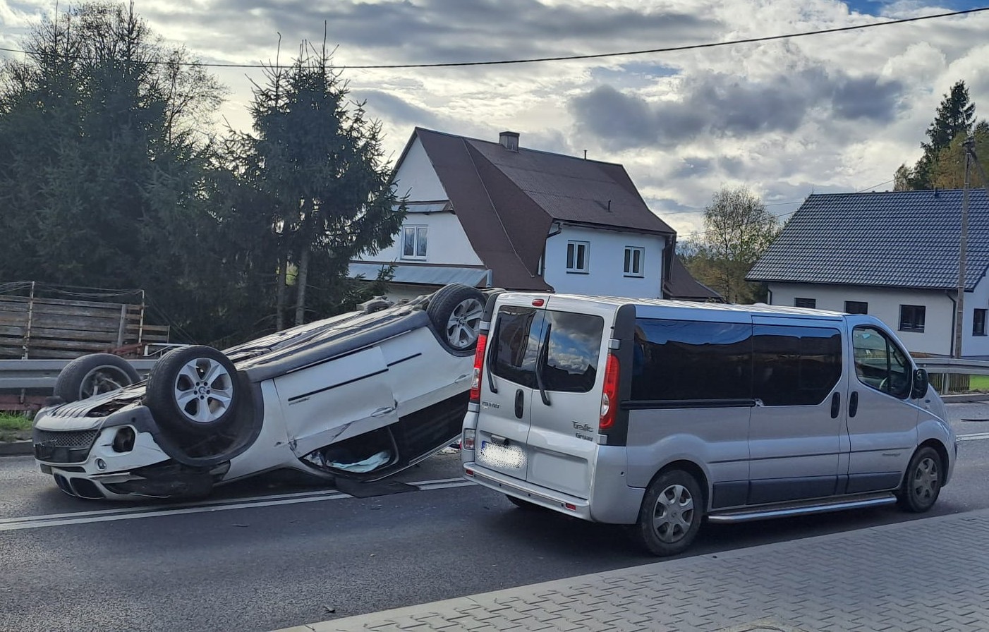 Na drodze z Jabłonki do Czarnego Dunajca zderzyło się kilka aut. Jedno z nich dachowało.
