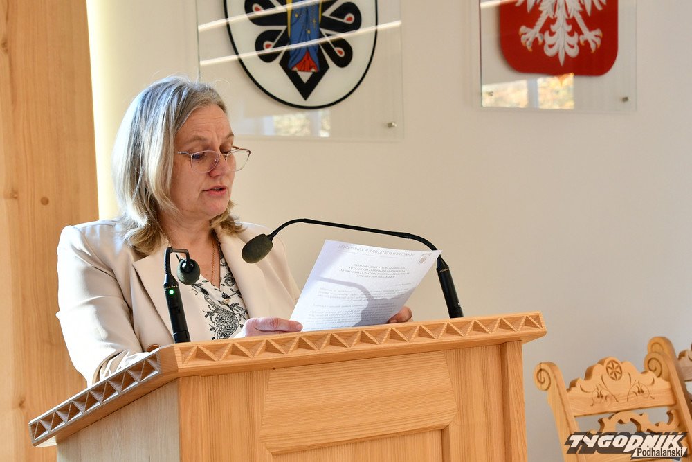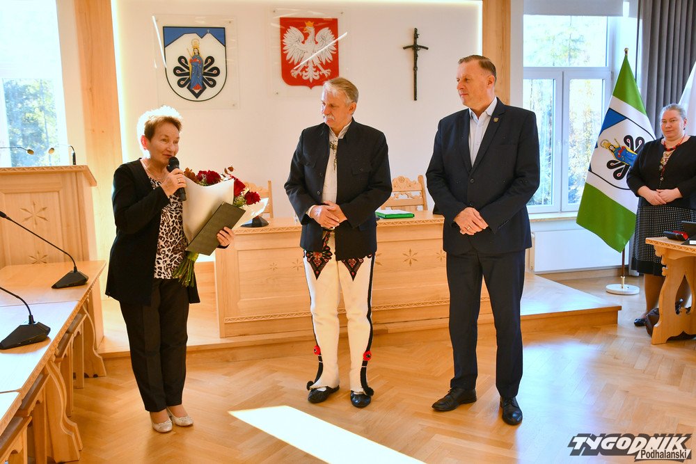 Dziś podczas XVI Sesji Rady Powiatu Tatrzańskiego wręczona została Nagroda Starosty Tatrzańskiego za szczególne osiągnięcia dla kultury regionalnej na terenie Powiatu Tatrzańskiego dla Mirosławy Lubowicz, która obchodzi w tym roku podwójny jubileusz: 50-lecie pracy pedagogicznej i artystycznej oraz 20-lecie istnienia założonego przez siebie Tatrzańskiego Chóru "Szumny".