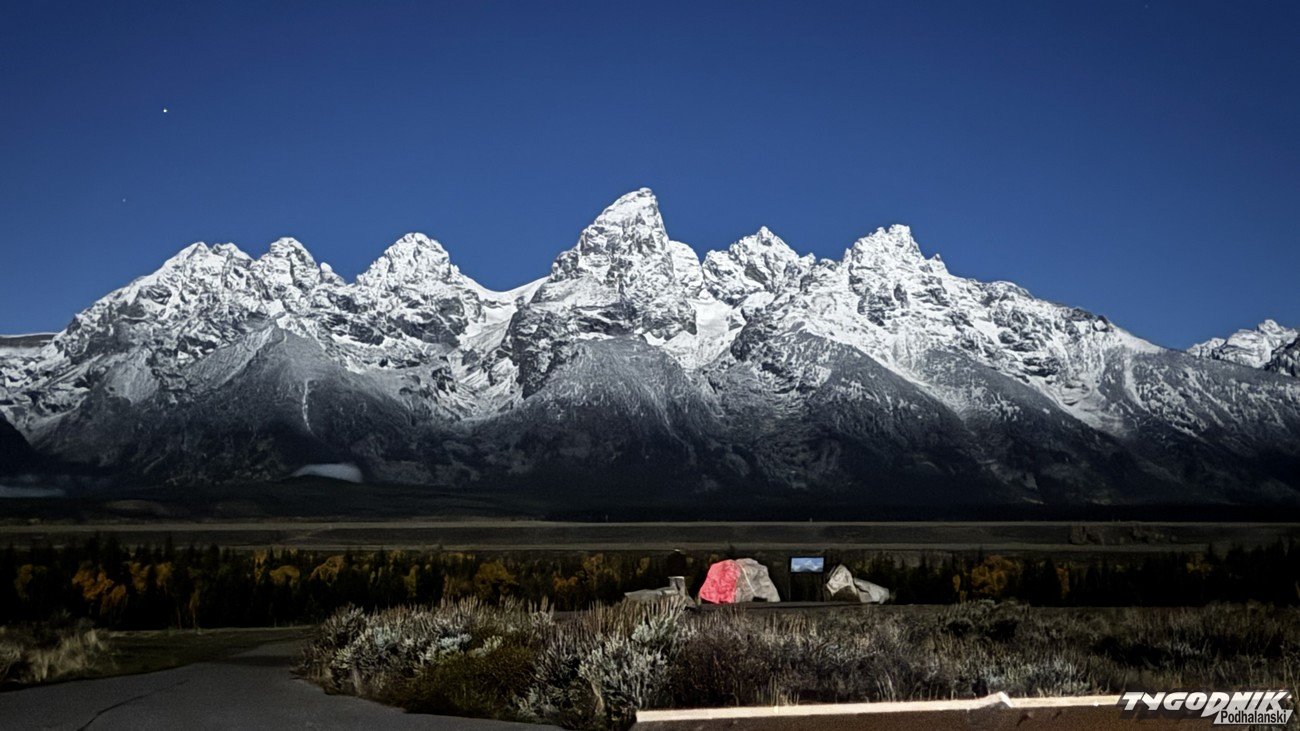 To był dzień, w którym natura pokazała całą swoją moc i piękno. Z Jackson Hole ruszyliśmy w stronę Grand Teton National Park – miejsca, które zawsze zapiera dech w piersiach. Góry Teton wyrastają gwałtownie z dna doliny, bez przedgórza, tworząc jedną z najbardziej imponujących panoram Ameryki Północnej. To wysokie orły, sięgające niemal 4200 metrów nad poziomem morza, strzeliste, surowe, nieujarzmione. U ich stóp błyszczy Jezioro Jackson, którego spokojna tafla odbija ośnieżone granie jak lustro. To jedno z tych miejsc, gdzie człowiek instynktownie zdejmuje czapkę – z szacunku wobec ciszy i wielkości natury.
