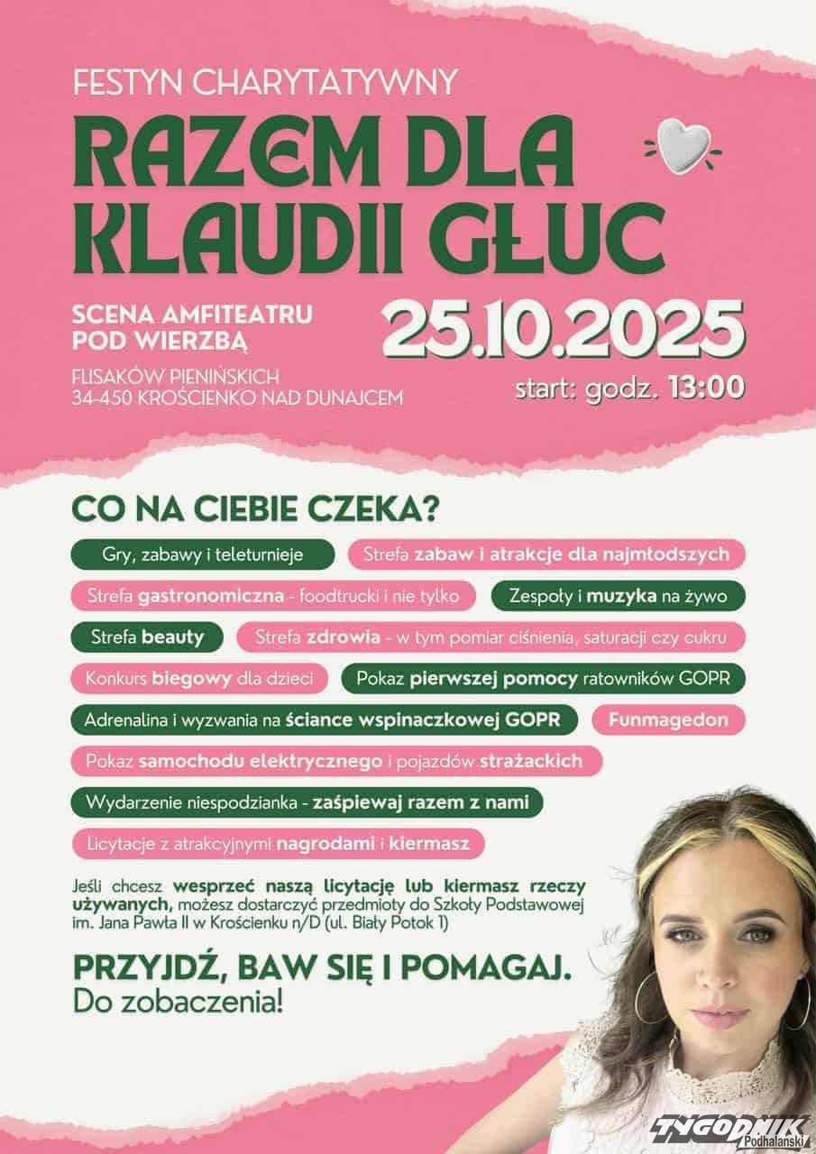 Pomóżmy Klaudii wygrać z chorobą. Festyn już w sobotę, 25 października w Amfiteatrze pod Wierzbą w Krościenku.