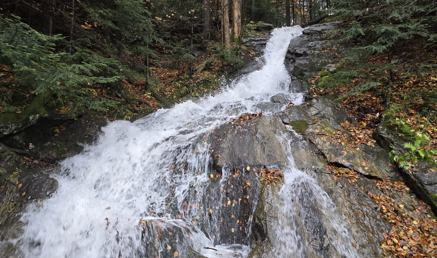 Nad Morskim Okiem w ciągu doby spadło aż 92 mm deszczu, na Polanie Chochołowskiej 68, w Zakopanem 58. To naprawdę duże dawki opadów. W Tatrach sypał śnieg, teraz śnieżna warstwa zalega od ok. 1200-1300 metrów. Górskie potoki są wzburzone, co widać na przykładzie wodospadu Spadowiec. Znajduje się on przy Drodze pod Reglami, między Doliną Białego, a Strążyską. Zwykle ciekną tu dwie stróżki wody, dziś wygląda potężnie. W sobotę nie powinno padać i zapowiadane są większe przejaśnienia.