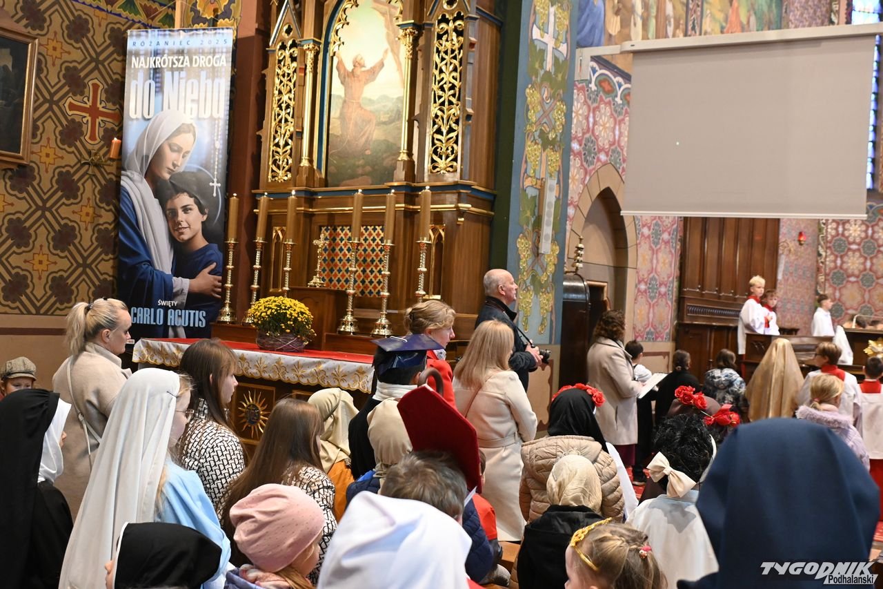 - Zdecydowaliśmy się na tą świętą, ponieważ zagłębiliśmy jej życiorys i nas zaciekawił nas. To kolejna młoda osoba, która została ogłoszona świętą. Uczesałam włosy córki na wzór Gemmy, babcia uszyła nam pelerynę i dodaliśmy jeszcze emblematy sióstr pasjonistek, do których chciała Gemma dołączyć - wspominała M. Jachimowska-Filar.