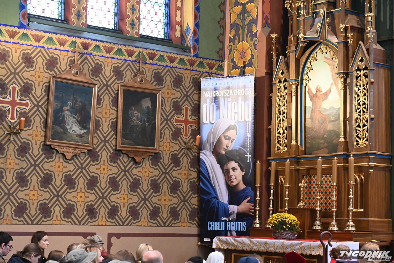 Jednym z punktów II Rabczańskiego Marszu Wszystkich Świętych była uroczysta Msza św. w kościele pw. Marii Magdaleny. Eucharystii przewodniczył ks. proboszcz Piotr Iwanek. - Są różne rady na świętość. Jedna z nich mówi, by żyć tak każdego dnia, aby nikt przez nas nie płakał. Inna znowu wskazuje nam, byśmy nieśli radość i pocieszenie, zwłaszcza tym, którzy się smucą - mówił ks. Piotr Iwanek. Duchowny przedstawił też dwa obrazy ze świętymi: św. Dominikiem Savio i św. Carlem Acutisem. - Co ich łączy? Byli bardzo młodymi ludźmi. Okazuje się zatem, że świętość jest naprawdę na wyciągniecie ręki. Wyobrażacie sobie, że koledzy Carla ze szkolnej ławki mogą dzisiaj powiedzieć, że chodzili z nim do jednej klasy - zauważył ks. Iwanek.