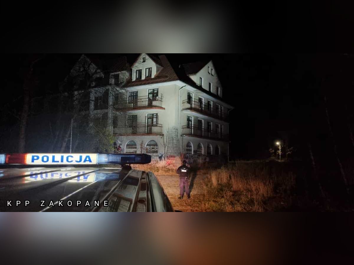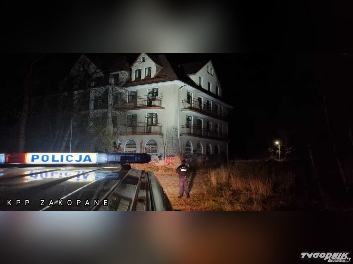 Zakopiańscy policjanci kontrolują opuszczone budynki poszukując osób narażonych na wychłodzenie.