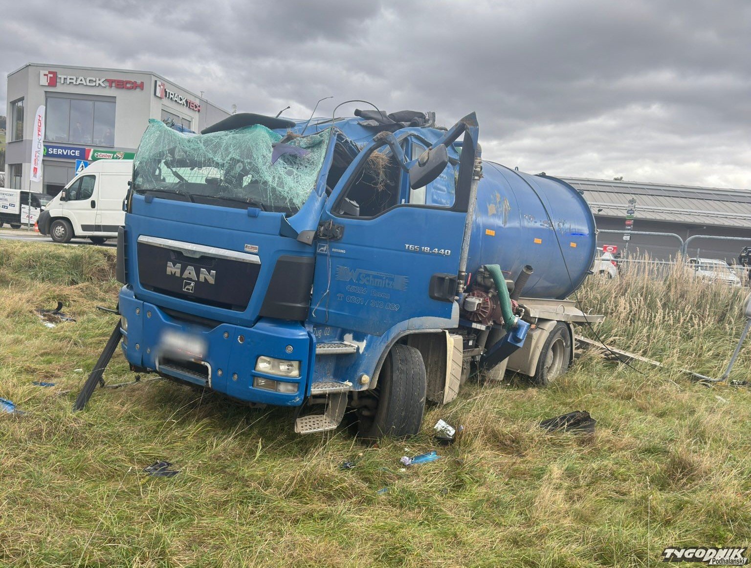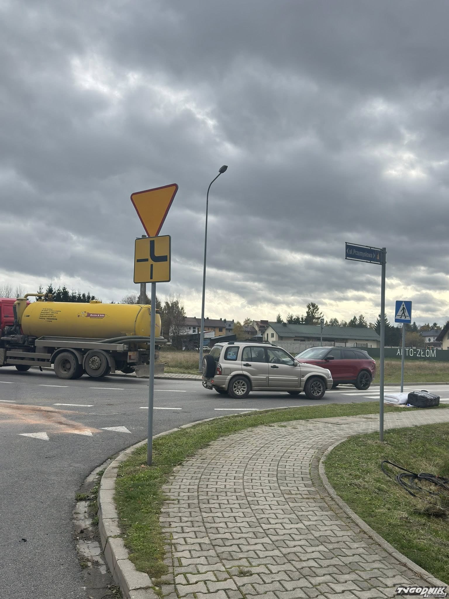 Na ul. Przemysłowej w Nowym Targu dziś ok. godz. 13 bus zderzył się z beczkowozem.
