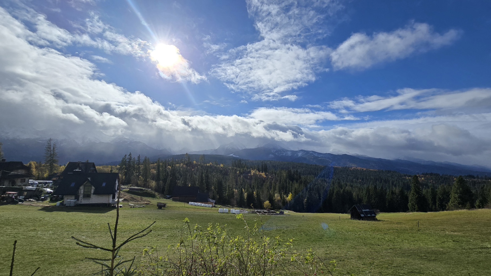 Nad Tatrami przetaczają się chmury, ale widoki z Głodówki i tak piękne.