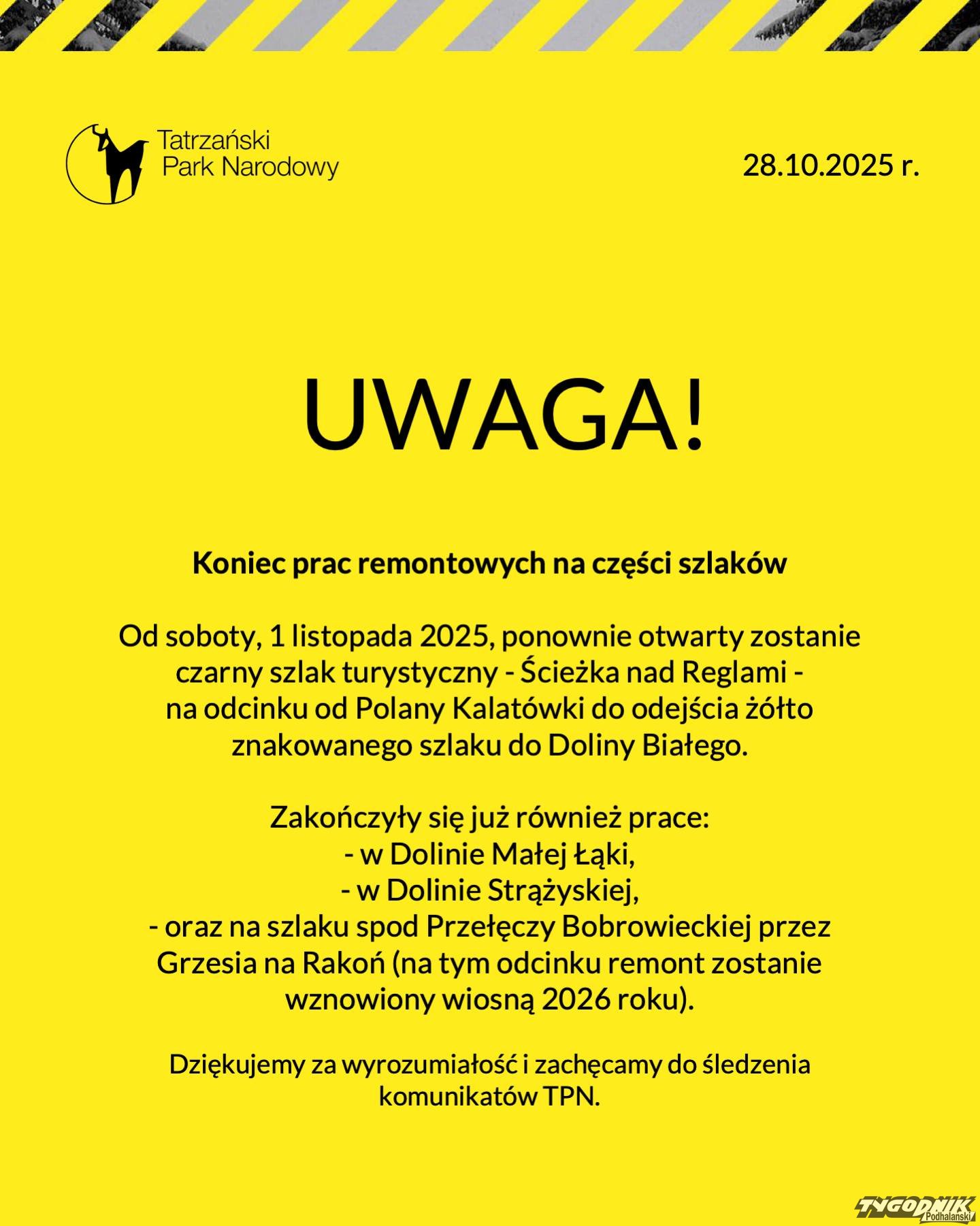 Tatrzański park otwiera niektóre szlaki po remoncie