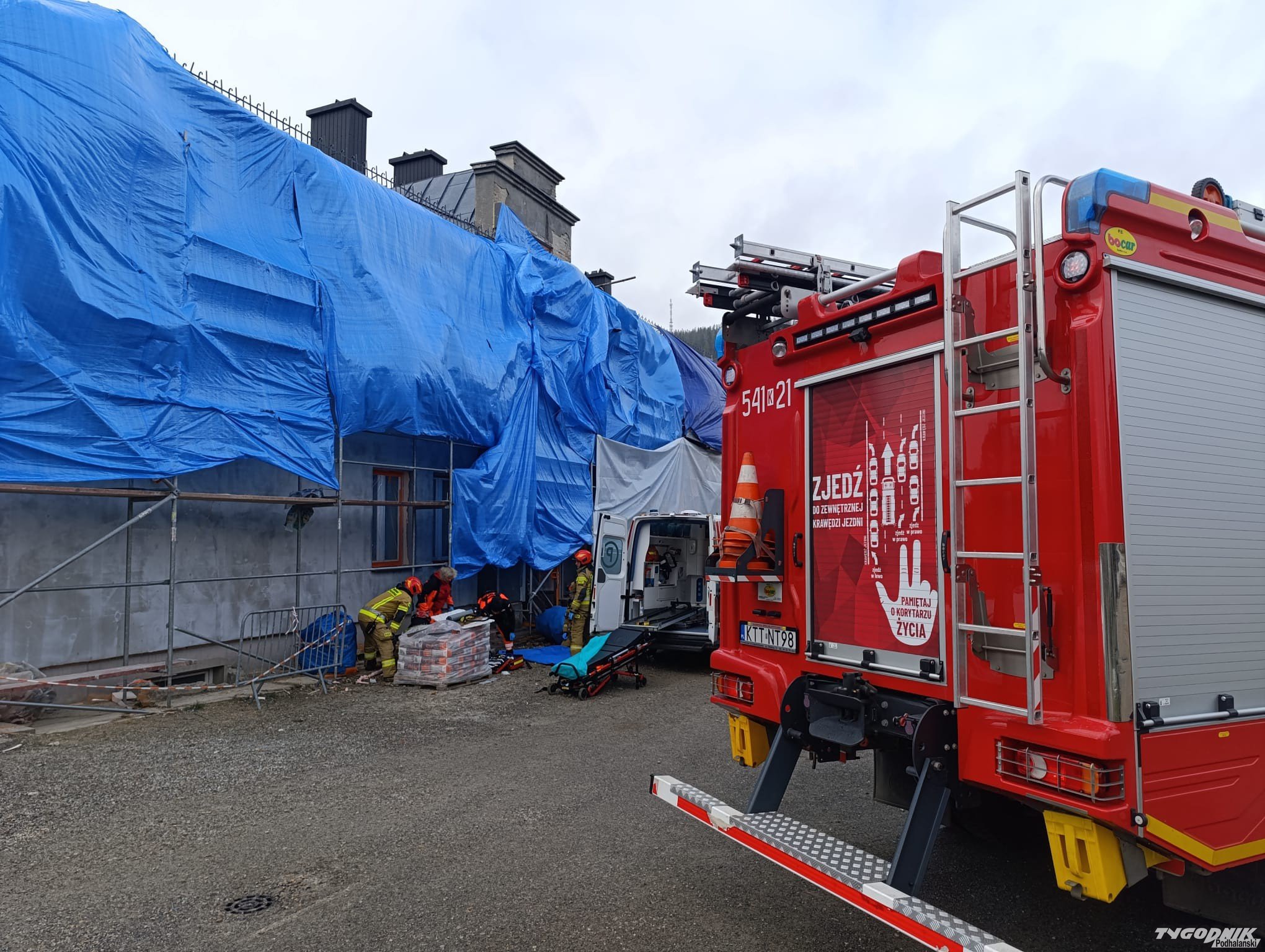 Mężczyzna na budowie spadł z rusztowania. Był pijany