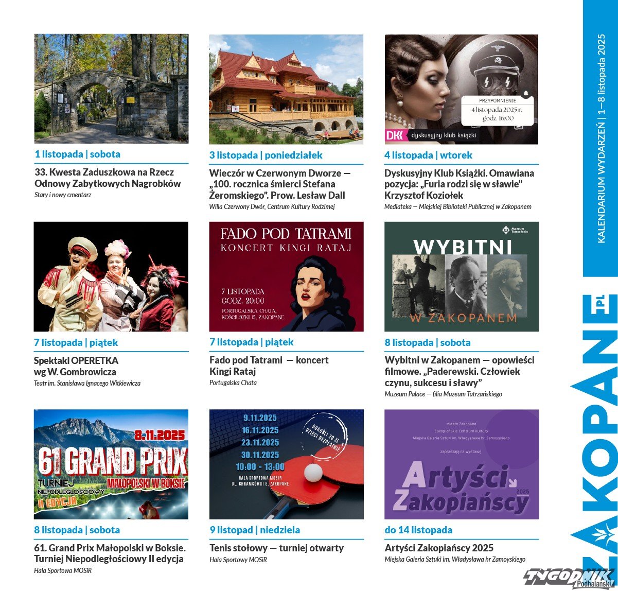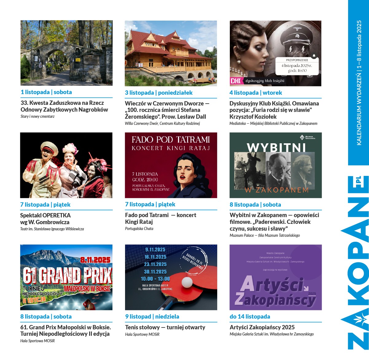 Gdy już spotkamy się w rodzinnym gronie nad grobami naszych bliskich, w kolejne dni po Zaduszkach można będzie skorzystać z bogatej oferty przygotowanej pod Giewontem z myślą o mieszkańcach i turystach.