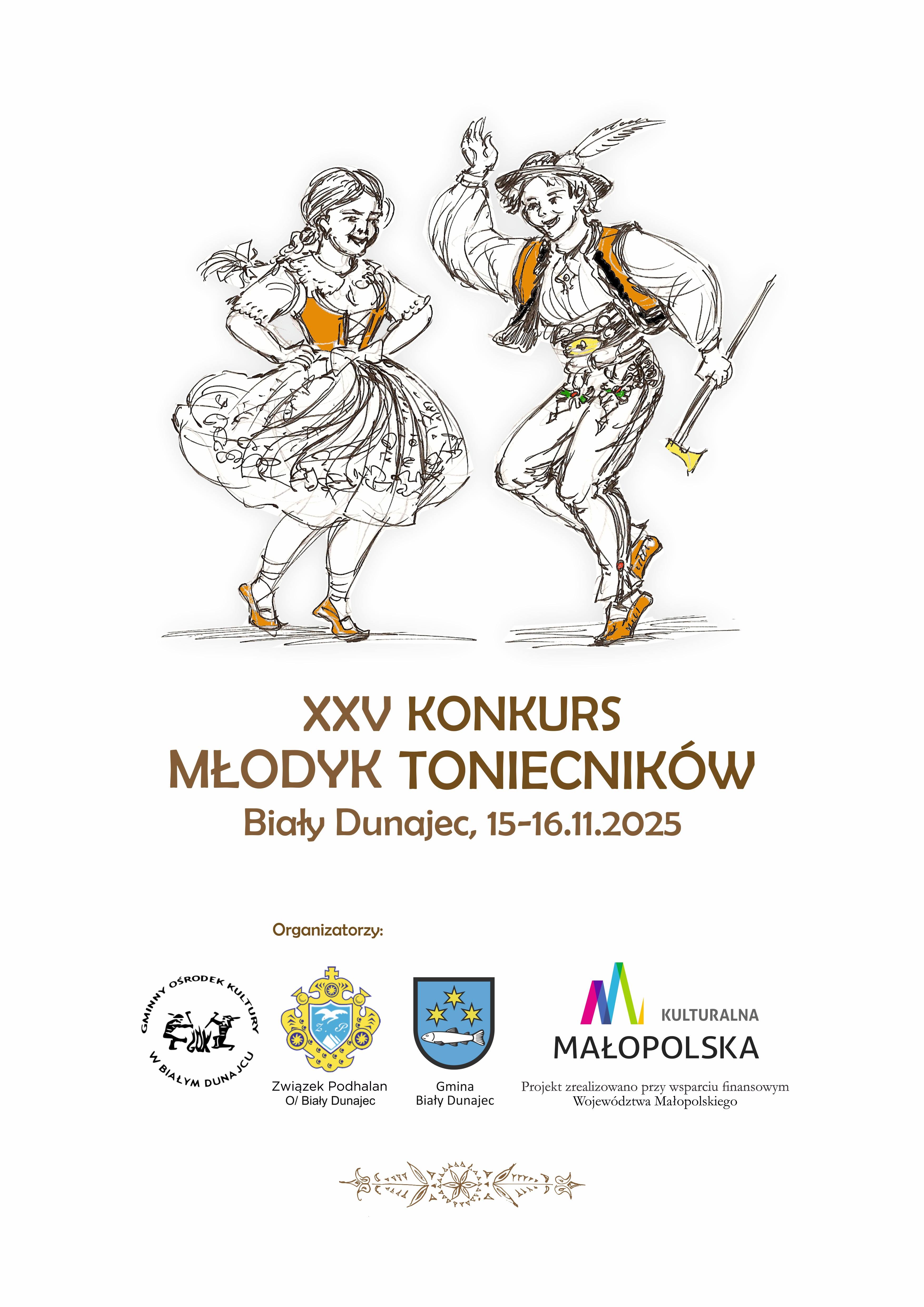 Gminny Ośrodek Kultury w Białym Dunajcu zaprasza dzieci i młodzież tańczącą w podhalańskich zespołach regionalnych, jak i osoby niezrzeszone, do udziału w XXV Konkursie Młodyk Toniecników.