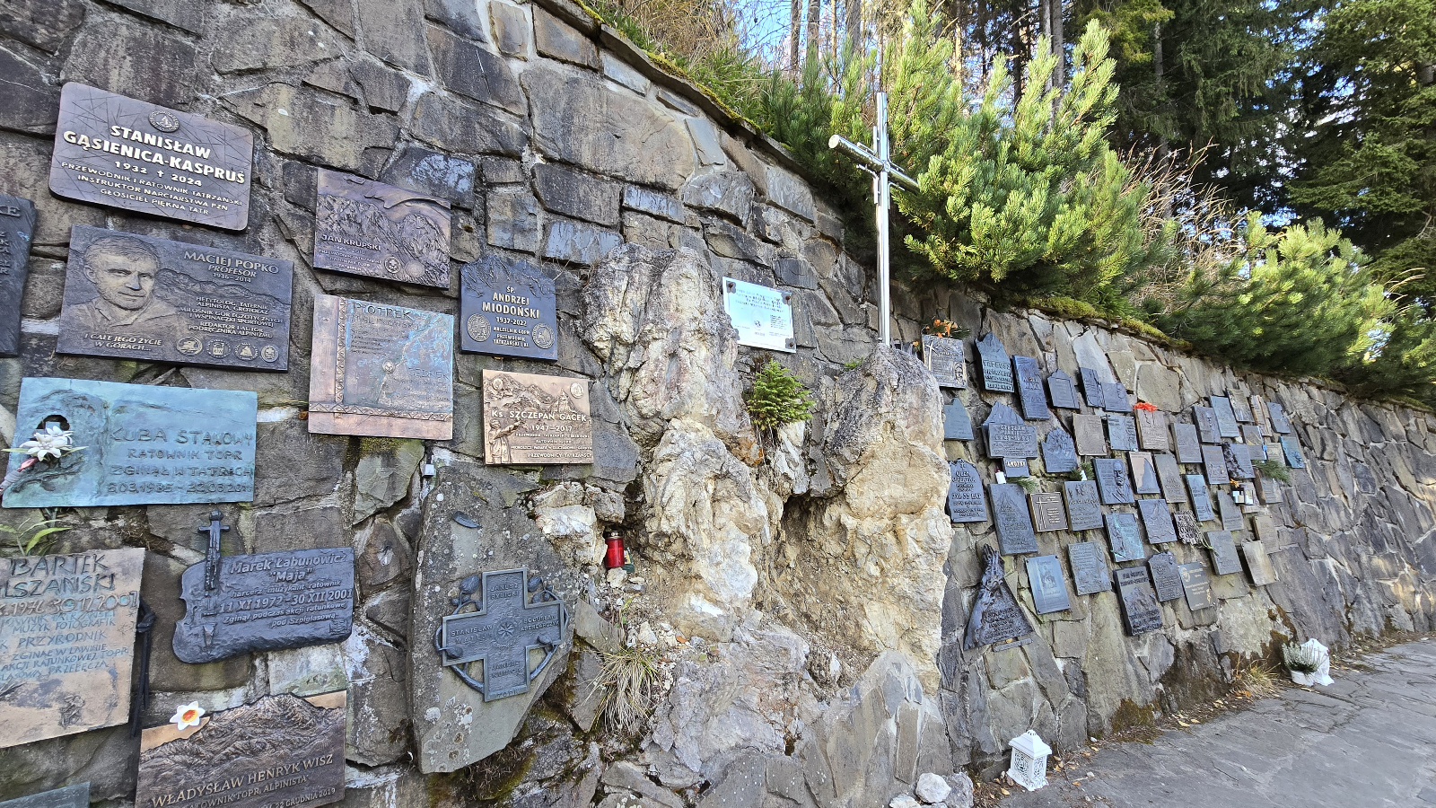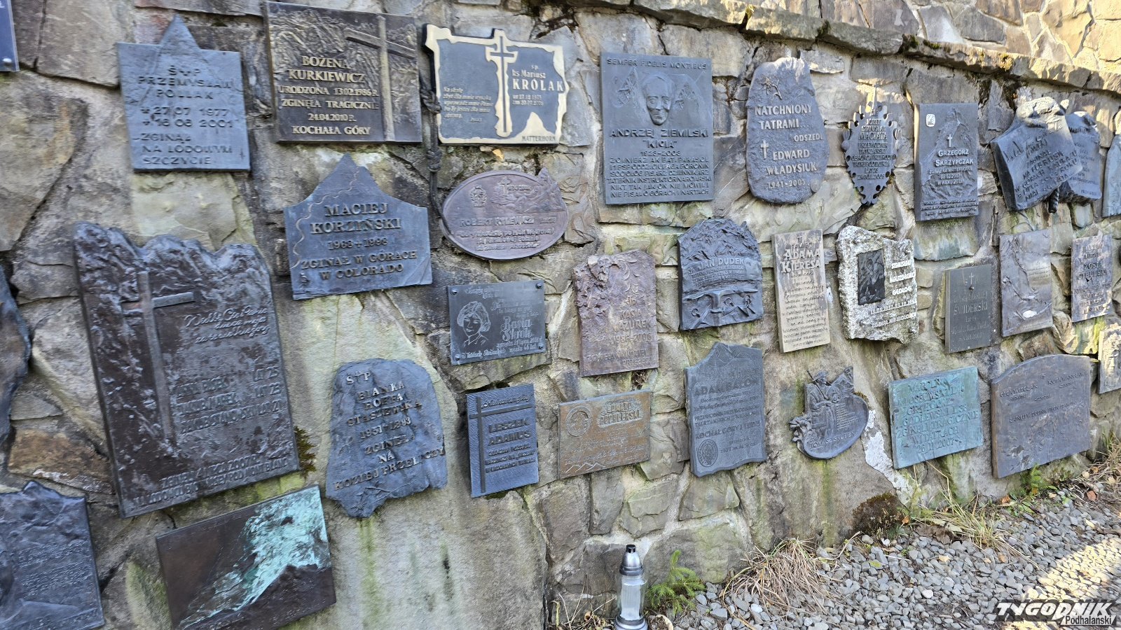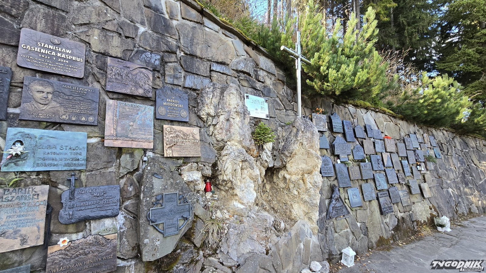 Wokół Sanktuarium Matki Bożej Jaworzyńskiej Królowej Tatr znajdują się tablice upamiętniające tych, którzy na zawsze pozostali w górach.