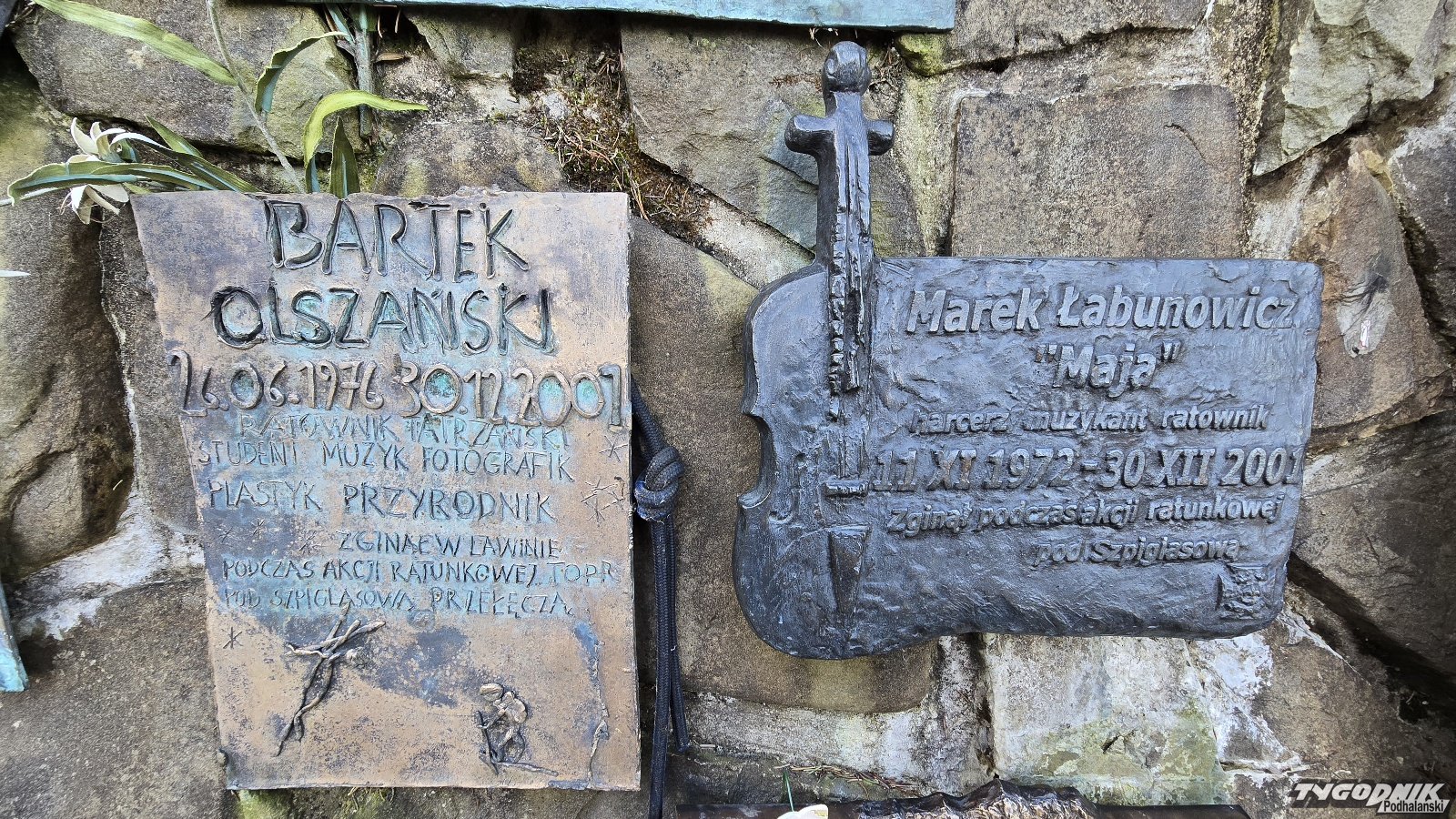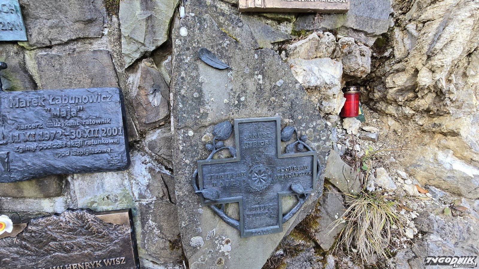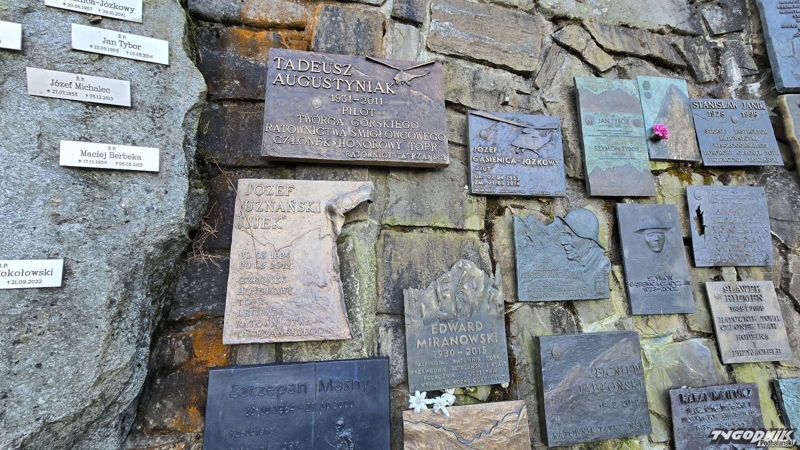 Wokół Sanktuarium Matki Bożej Jaworzyńskiej Królowej Tatr znajdują się tablice upamiętniające tych, którzy na zawsze pozostali w górach.