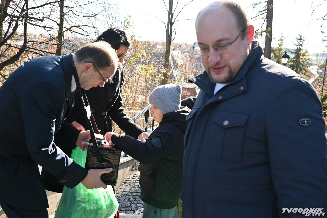 W godzinach przedpołudniowych z "puszką" stał m.in. burmistrz Nowego Targu Grzegorz Watycha, młodzi strażacy z OSP Kowaniec.