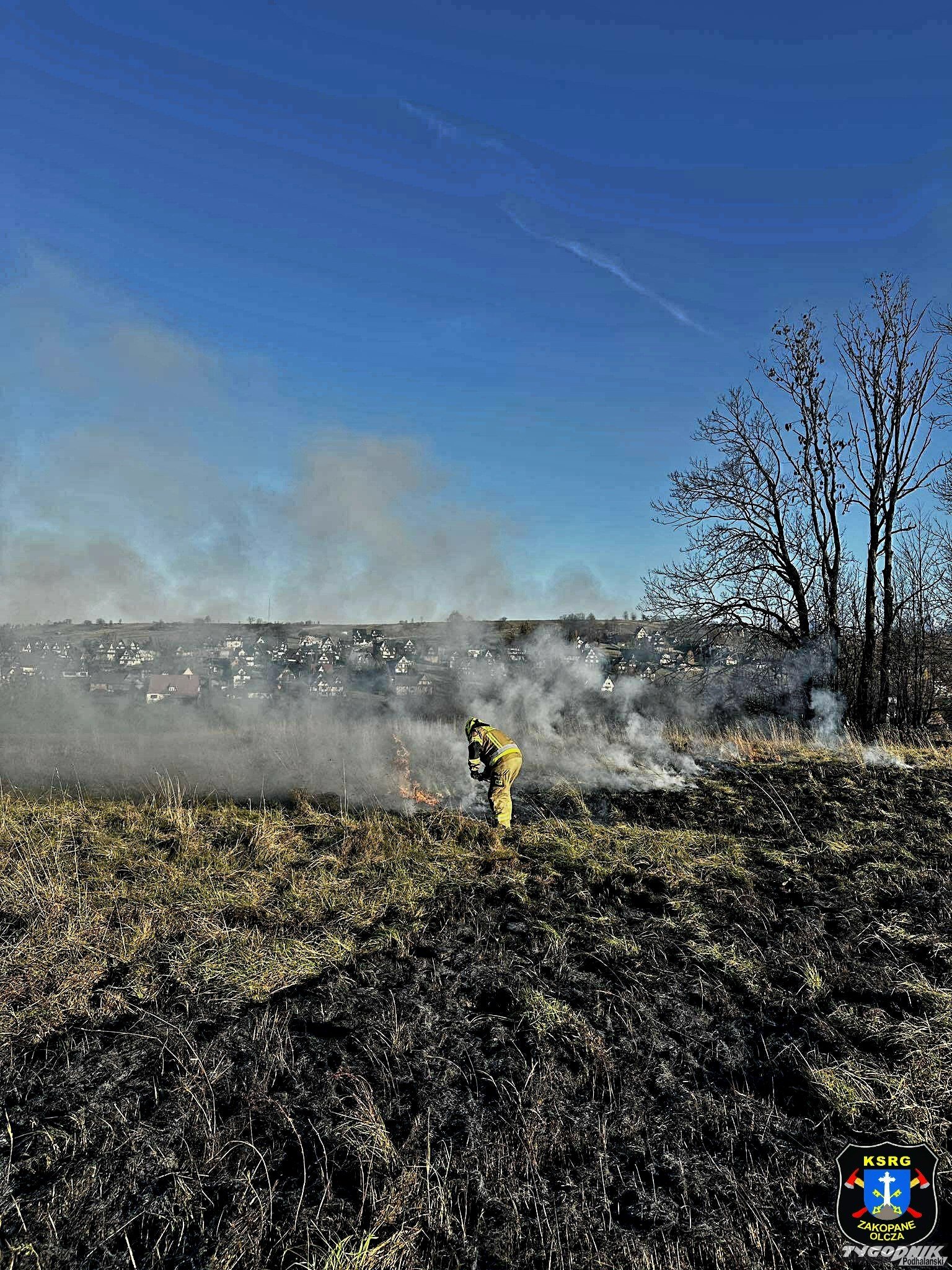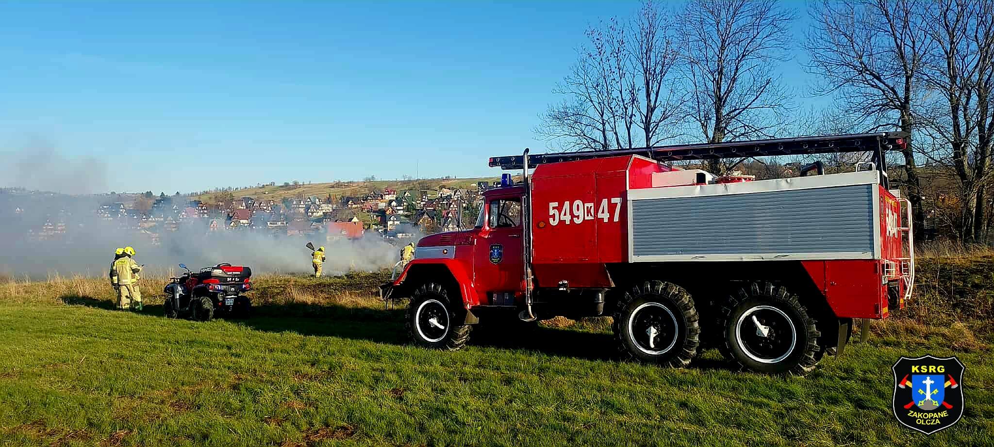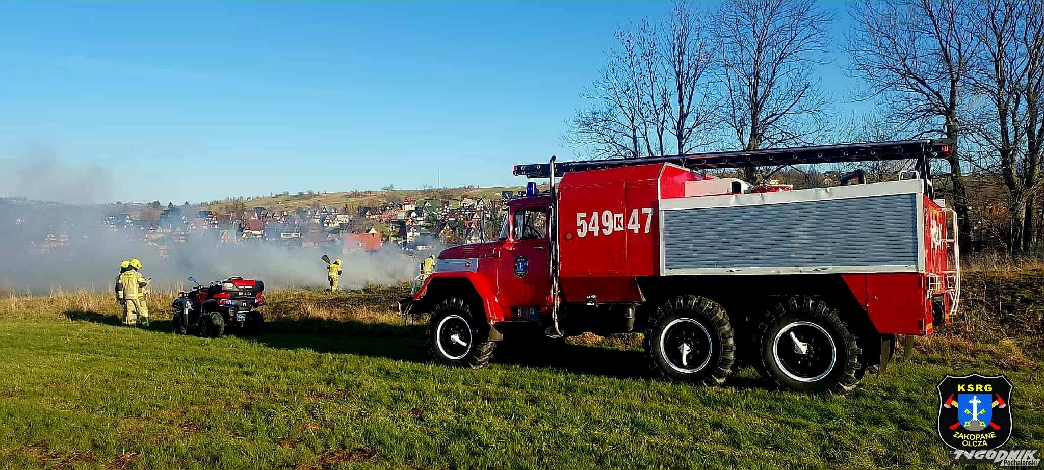 Strażacy z OSP Olcza gasili pożar traw na Bachledzkim Wierchu w Zakopanem.