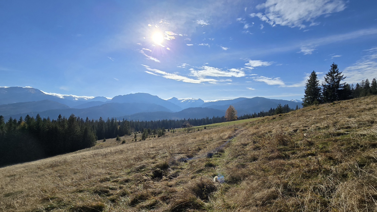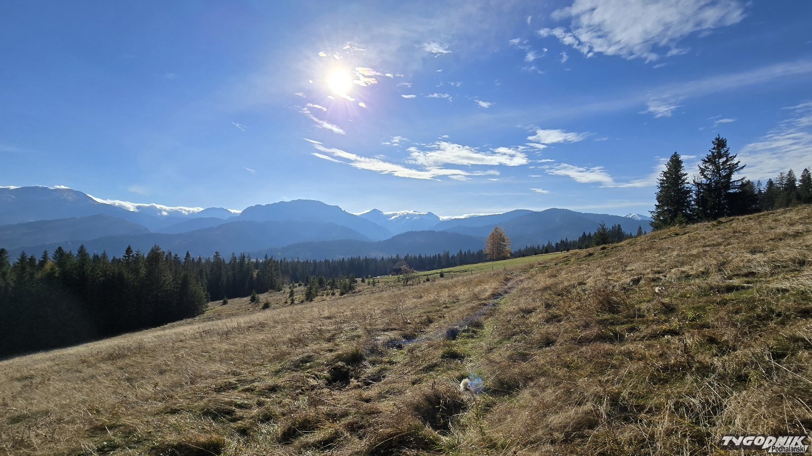 Polana znajduje się poza terenem Tatrzańskiego Parku Narodowego. Nie dociera tu wielu turystów, więc nawet w weekendy można do woli cieszyć się wspaniała panoramą. Podziwiamy więc Tatry od Tatr Bielskich przez Tatry Wysokie, Giewont, Czerwone Wierchy, Kominiarski Wierch, Starorobociański, Jarząbczy. Zobaczcie, jak było w tym pięknym miejscu w niedzielę: