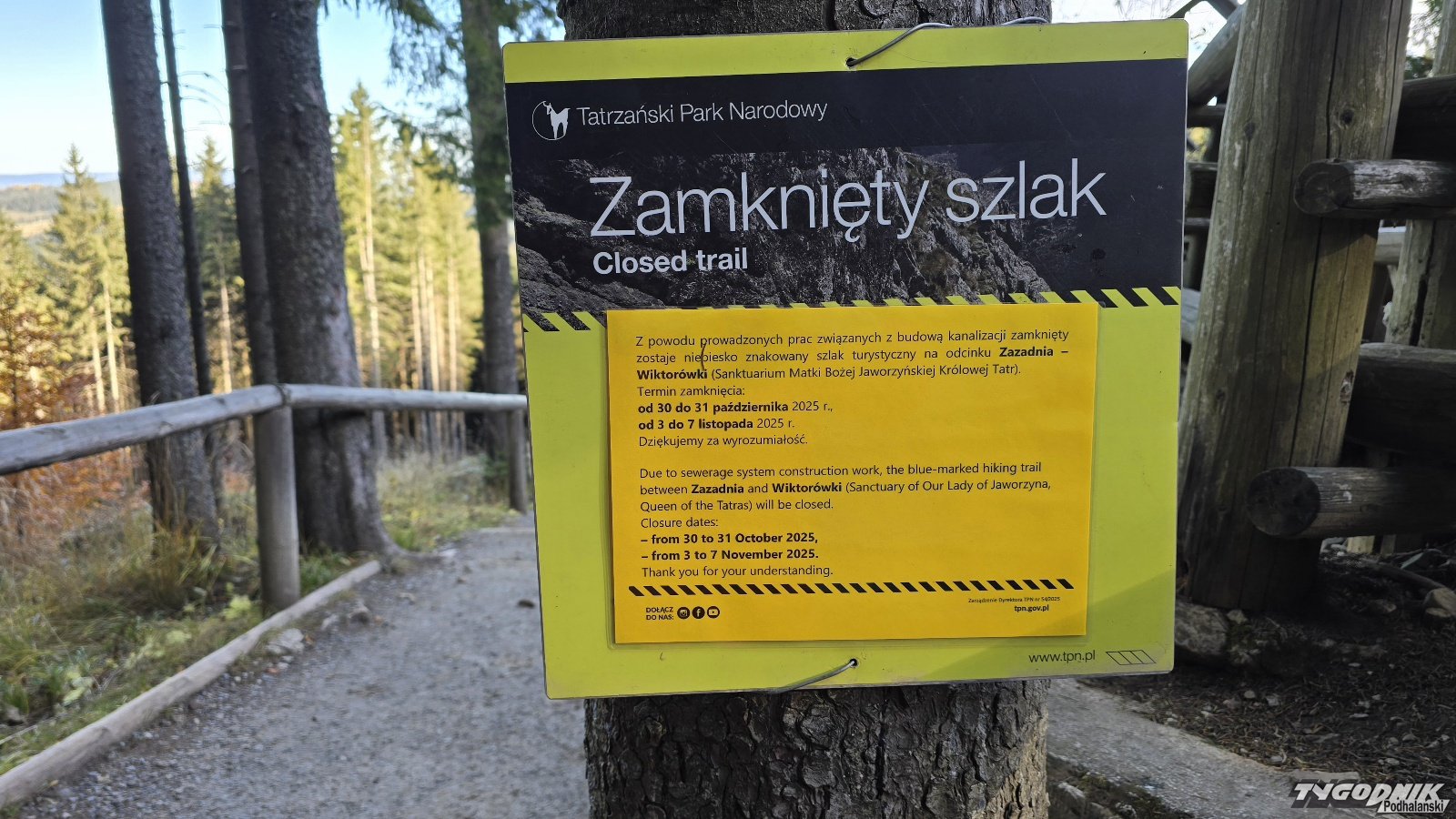 Szlak był zamknięty już w ubiegłym tygodniu. Przejście zostało otwarte na miniony weekend, a dziś (poniedziałek 3 listopada) ponownie zamknięte aż do 7 listopada. W lutym tego roku Tatrzański Park Narodowy podpisał umowę z Narodowym Funduszem Ochrony Środowiska dotyczącą dofinansowania inwestycji i aktualizacji planu ochrony Parku - w sumie 10 mln zł.