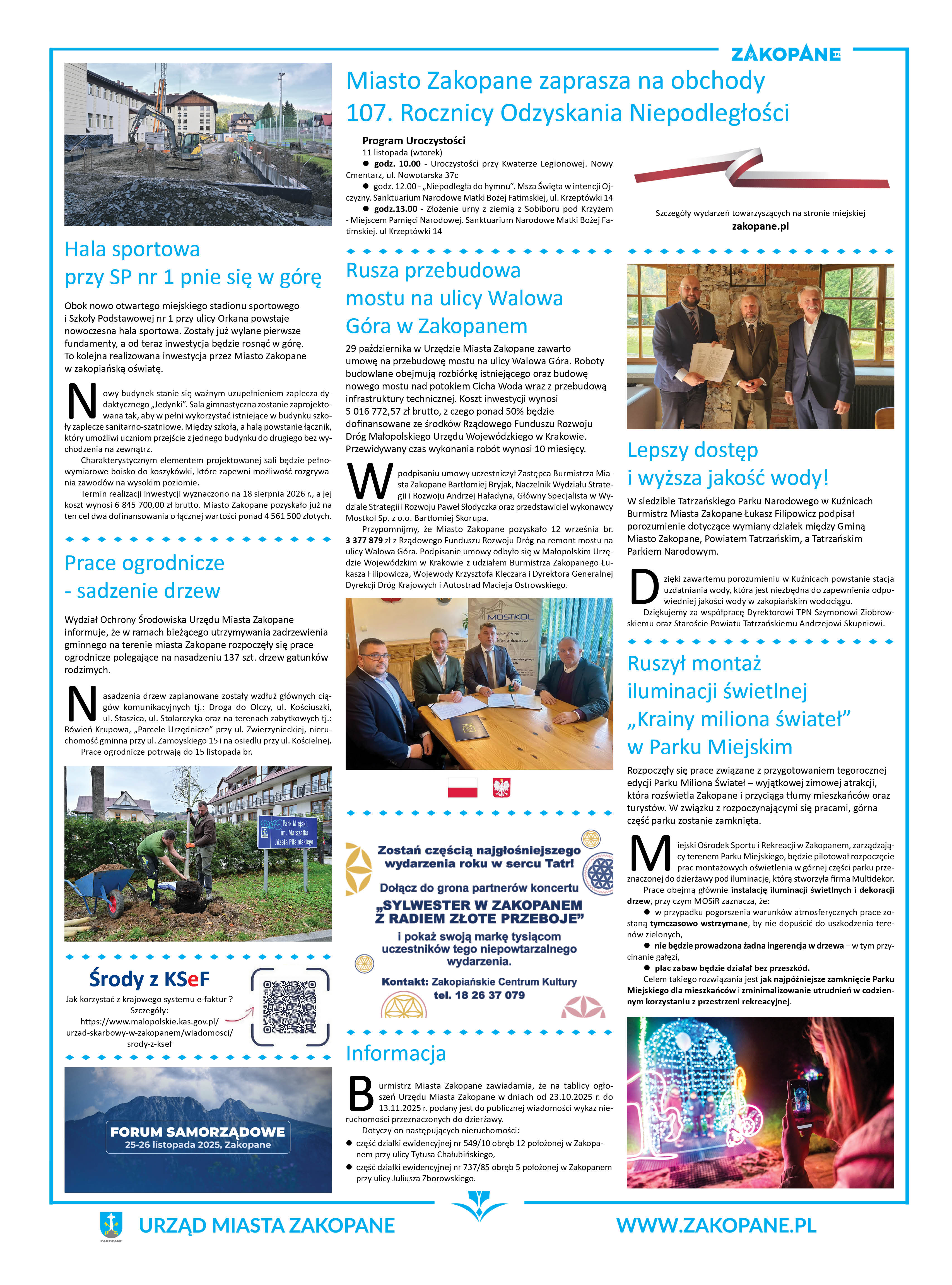 Listopadowa kolumna informacyjna Urzędu Miasta Zakopane.