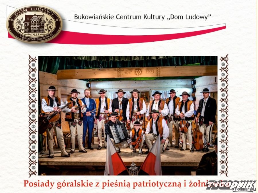 Bukowiańskie Centrum Kultury zaprasza do wspólnego świętowania w trakcie posiadów góralskich z pieśnią patriotyczną i żołnierską "Podhalańska idzie wiara".