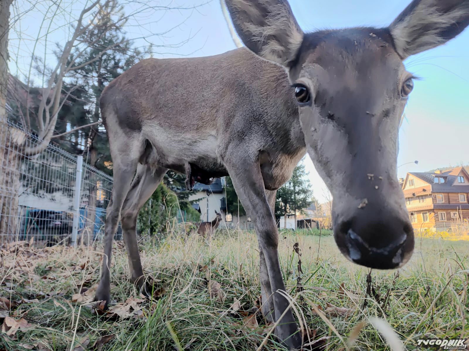 Mieszkańcy ul. Chramcówki w Zakopanem proszą o interwencję służb. W ich okolicy spaceruje ranna łania z maleństwem.