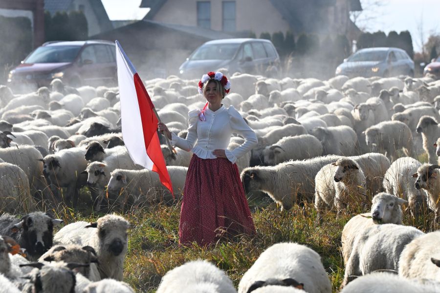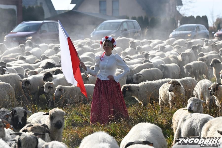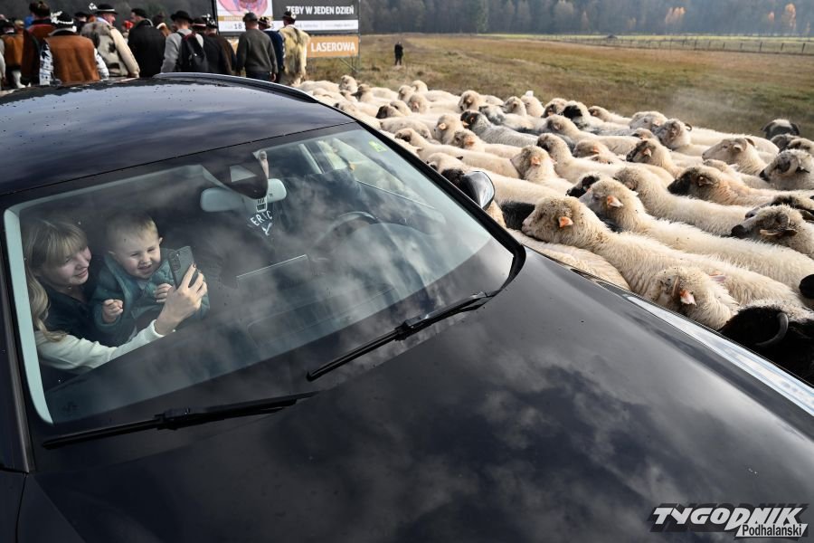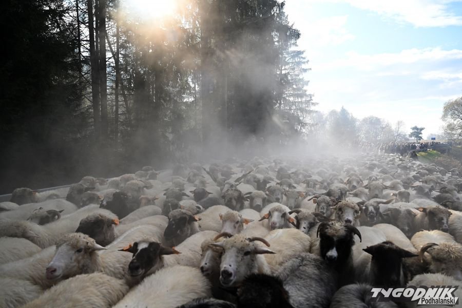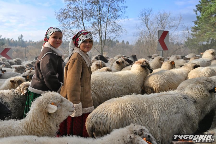 Baca Andrzej Lassak z rodziną i ze swoimi owcami przeszli przez Lipnicę Wielką.