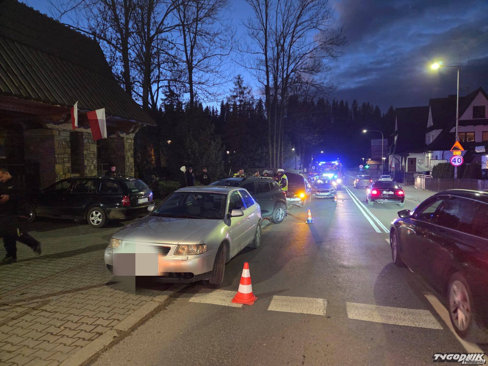 Do groźnie wyglądającego wypadku z udziałem trzech samochodów osobowych doszło przy skrzyżowaniu w centrum Poronina.