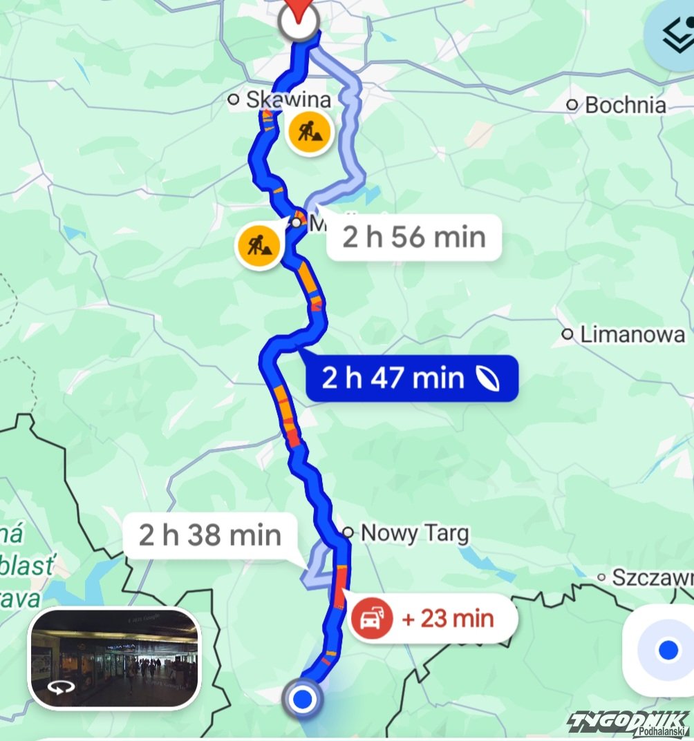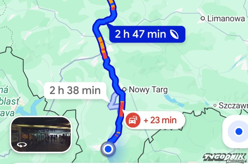 Największe zatory o godz. 12:50 tworzą się na odcinku Zakopane-Nowy Targ oraz w rejonie Rdzawki. W sumie pokonanie trasy z Zakopanego do Krakowa zajmuje ok. 2 godz. i 50 minut.