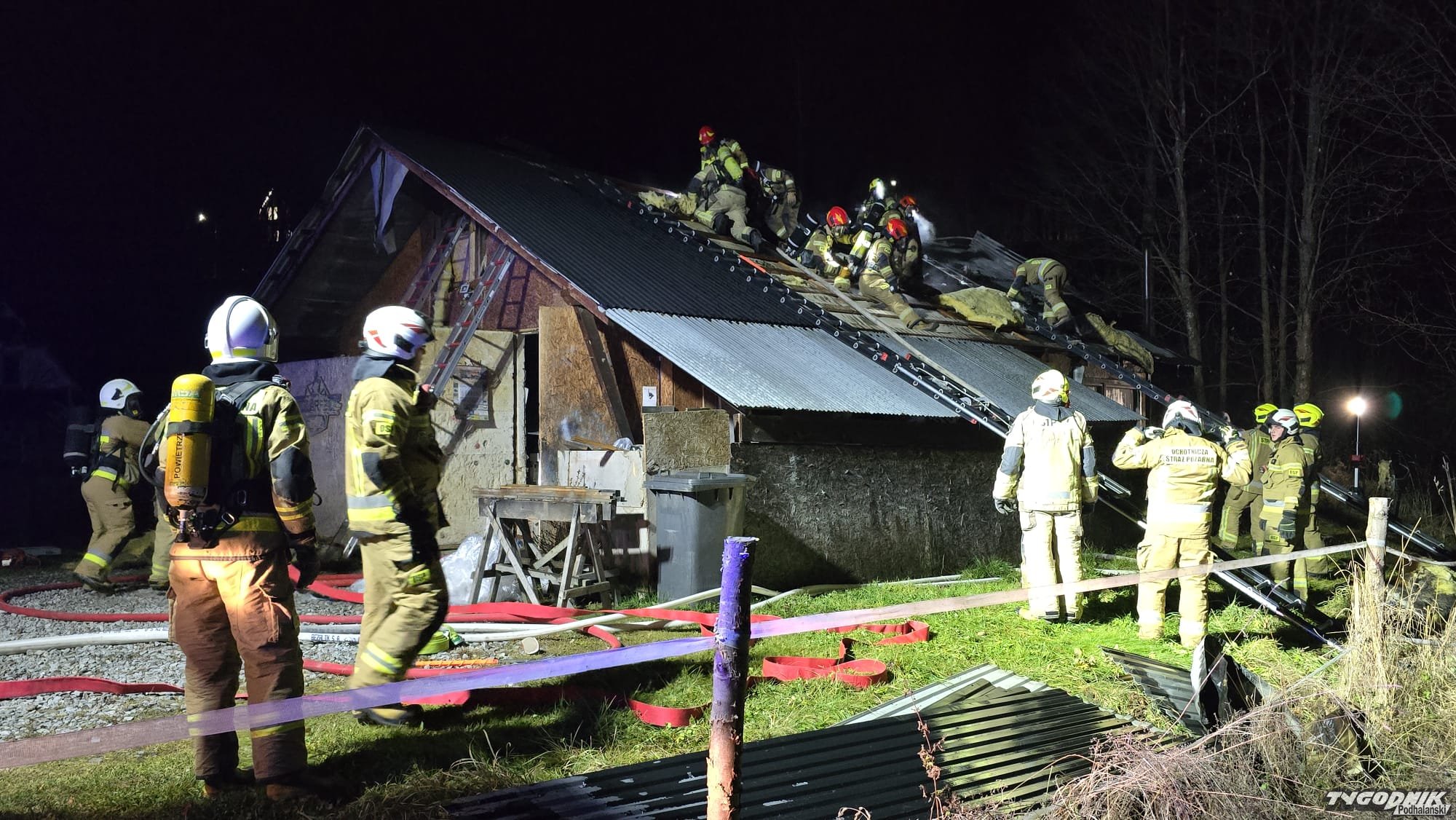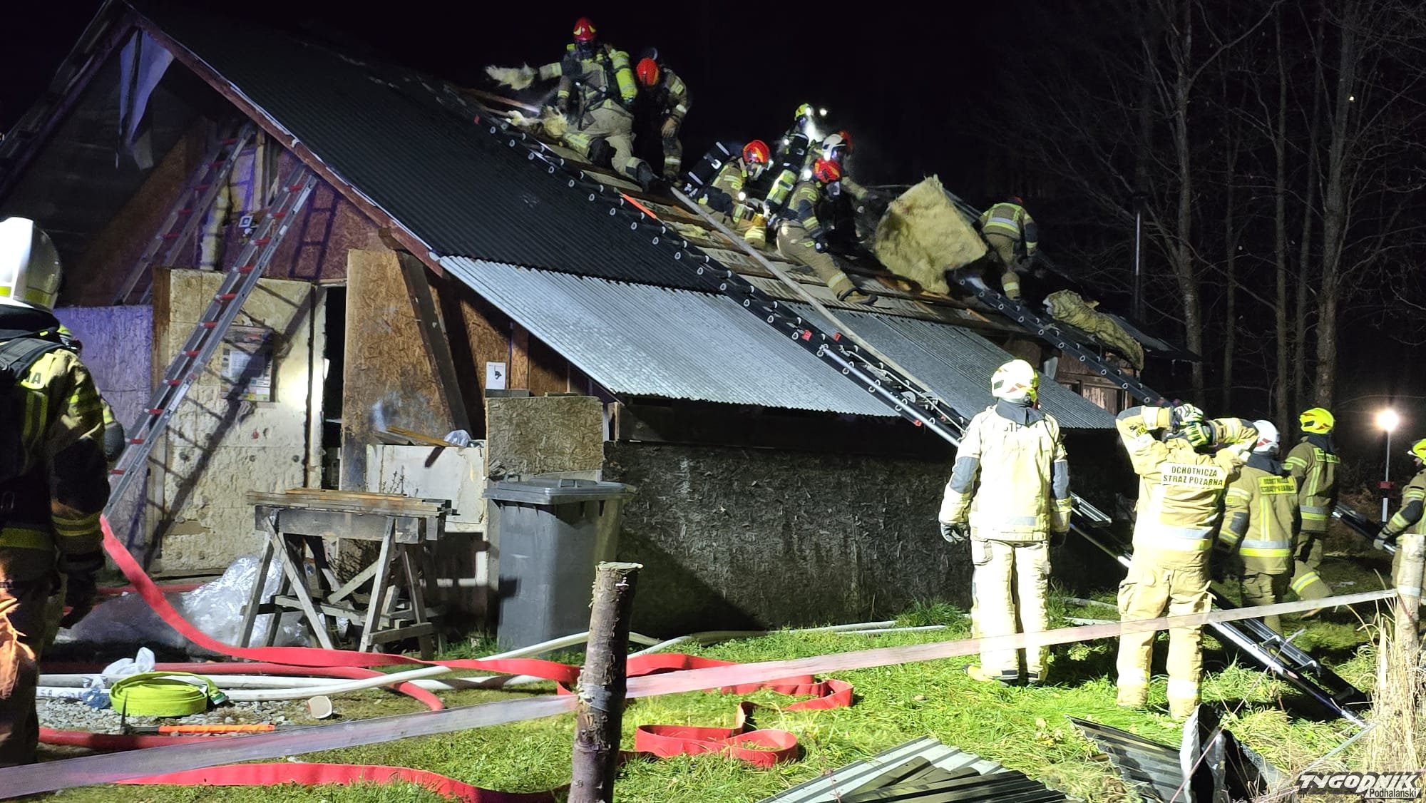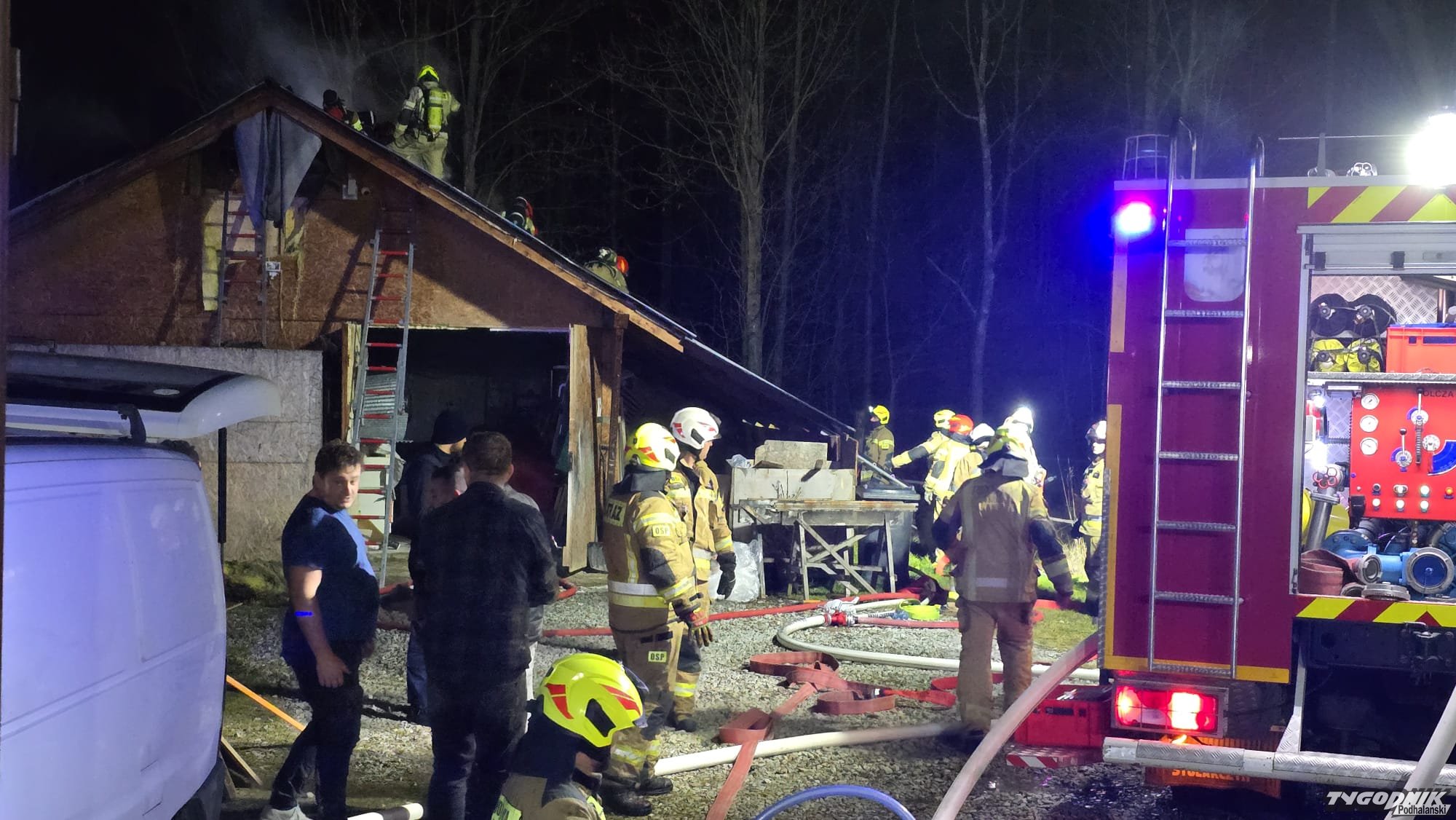 Pożar wybuchł przed godz. 21. Na miejsce dotarły już jednostki strażackie z OSP Olcza, JRG Zakopane, OSP Poronin, OSP Suche, OSP Ząb i OSP Witów. Trwa gaszenie ognia. Zapalił się niewielki budynek warsztatu stolarskiego.