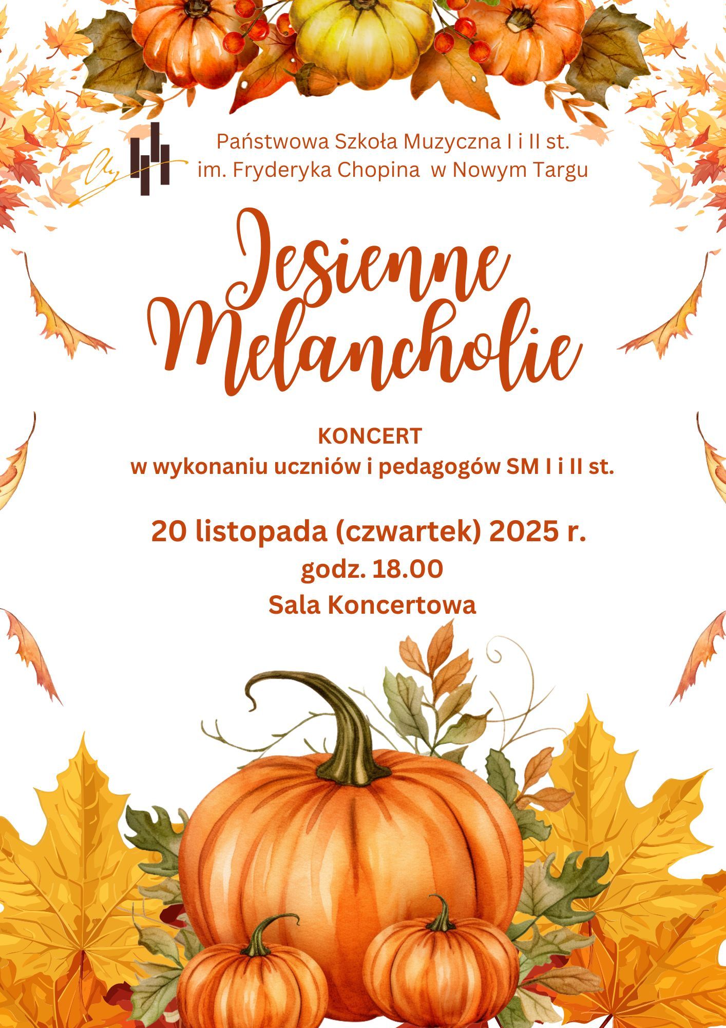 Na wydarzenie zaprasza Państwowa Szkoła Muzyczna I i II stopnia im. Fryderyka Chopina w Nowym Targu w czwartek 20.11 o godzinie 18.