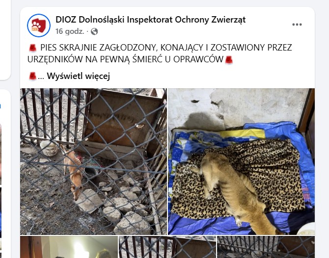 Skrajnie wycieńczony pies odebrany wyrodnym właścicielom w Rabce czuje się lepiej