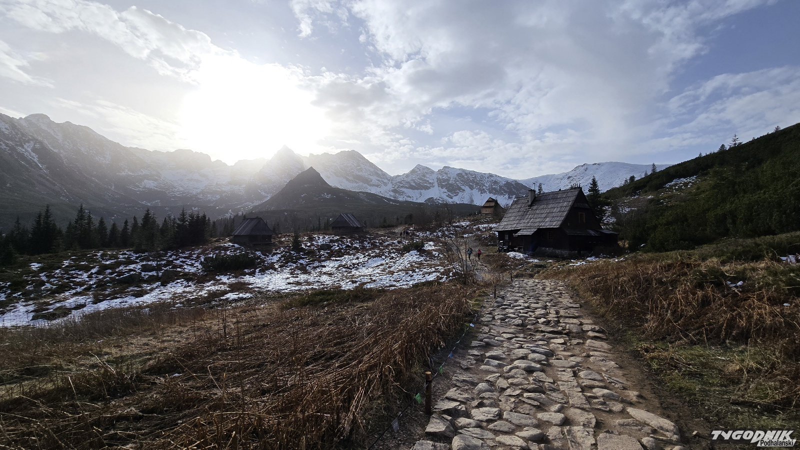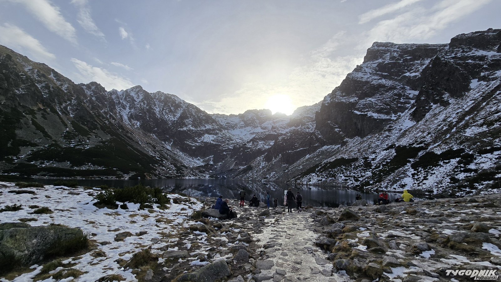 Rano w Zakopanem termometry pokazywały 3 st. C., a na Hali Gąsienicowej było 7 st. Jeszcze o godz. 8 na trasie na Halę Gąsienicową nie było wielu turystów. Więcej osób wyruszyło na szlak po godz. 10. Trasa na Gąsienicową przez Boczań sucha, tylko w końcowej części trochę błota. Już jednak wyżej miejscami zalega warstwa lodu, jest bardzo niebezpiecznie. Zobaczcie zdjęcia z Hali Gąsienicowej i Czarnego Stawu.